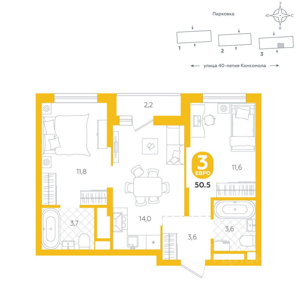 Квартира располагается в ЖК ''Комсомольский'' — жилом комплексе комфорт-класса. Здесь вы будете наслаждаться беззаботной жизнью, ведь ваш дом — воплощение практичности, безопасности и надежности. Для удобства предусмотрены колясочные на первых этажах домов, где можно оставить велосипеды и коляски в тепле. За безопасность отвечают система электронных ключей и видеонаблюдение. Еще здесь собственная котельная, поэтому в доме всегда будут горячая вода и оплата счетов только за фактически потребленное тепло.