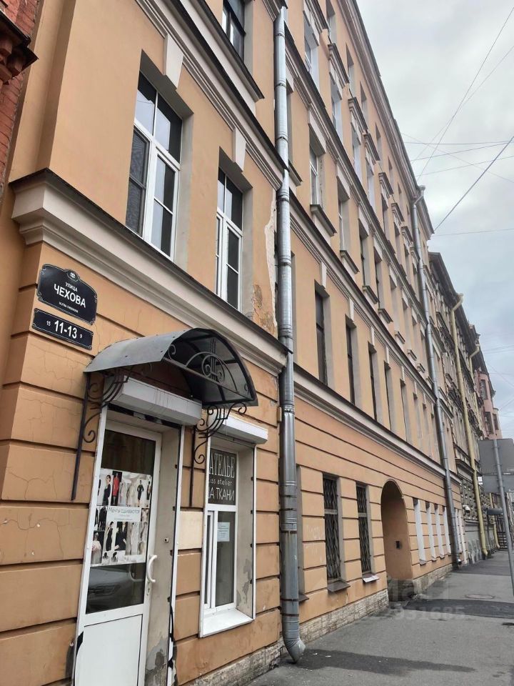 Предлагается Вашему вниманию четырехкомнатная квартира в самом сердце Санкт-Петербурга. В настоящее время квартира коммунальная, но в приятном жилом состоянии. Квартира хорошей правильной формы на комфортном третьем этаже. Высота помещений 3.46. Четыре окна квартиры выходят на спокойную улицу Чехова и два окна в квартире выходят во двор. Двор закрыт воротами. Двор сквозной с выходом на улицу Маяковского. На лестничной площадке всего по две квартиры. На первом этаже коммерческие помещения. Отремонтирован фасад дома. Сделан ремонт кровли в доме. Произведен ремонт в парадной, установлены камеры наблюдения. В доме произведена замена стояков отопления и водоснабжения. Горячее водоснабжение-центральное. Дом без лифта.