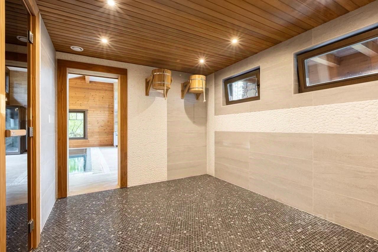 Участок 25 соток, на котором располагаются два дома: основной и гостевой, который включает спа зону и выход на террасу.