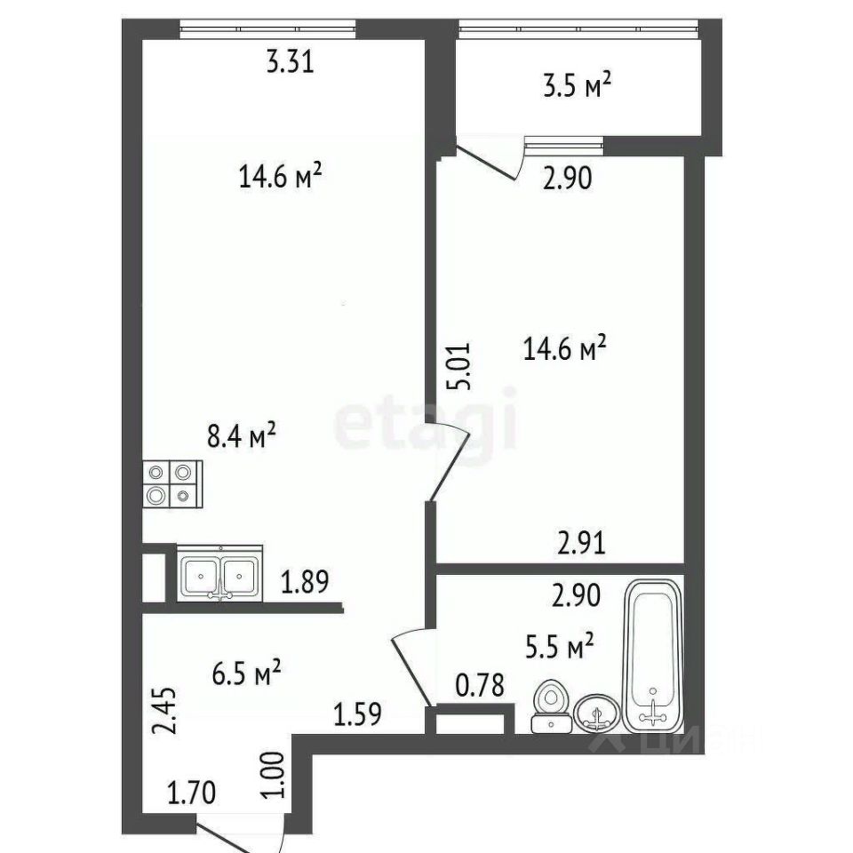 Квартира уникальна по своей концепции, таких сейчас не строят общий метраж по кадстру 49,6 кв.м. Кухня-гостиная 23 кв. метра отлично зонирована раздвижной перегородкой. Это может быть и доп. спальня, и кабинет, и столовая. Комната просторная с выходом на панорамную лоджию. Сан узел вместил не только стандартное оборудование, но и полноценны двустворчатый шкаф.