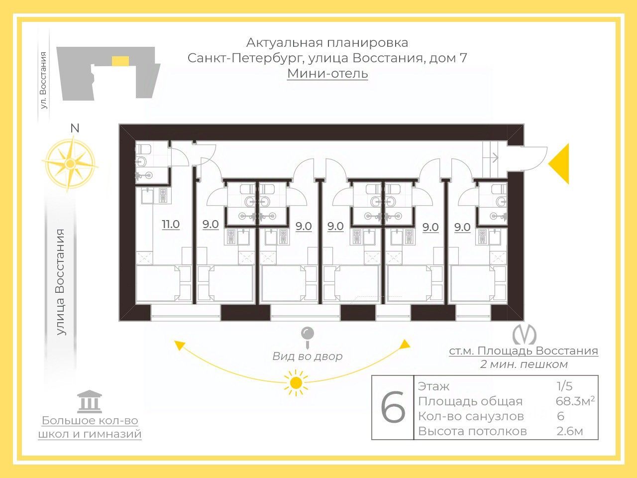 Арт. 92039637 Продается уникальный объект в самом центре Санкт-Петербурга — квартира 68м², переоборудованная под мини-отель (6 отдельных студий). Идеально для инвестиций и аренды!