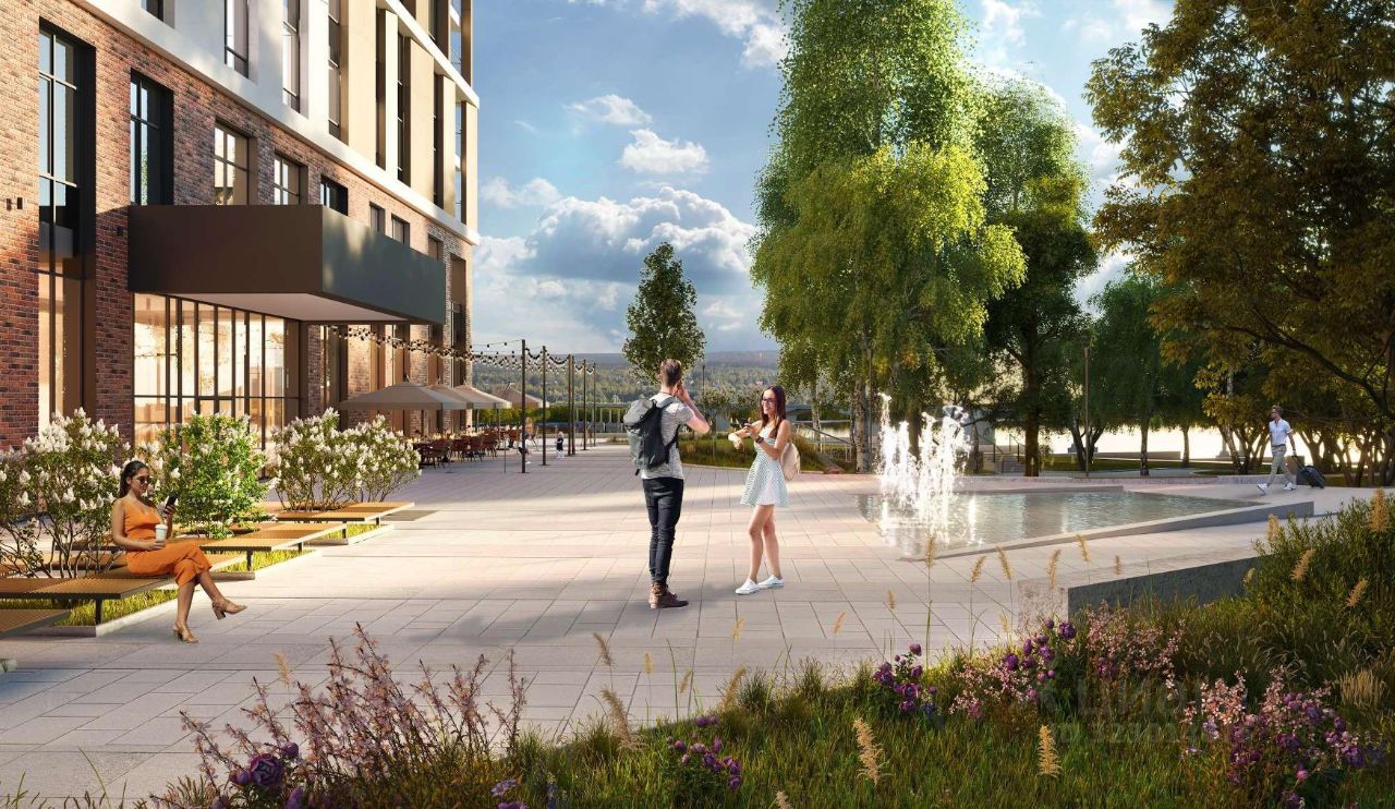 На территории: зеленый двор с авторским ландшафтным дизайном, арт-объекты, сухой фонтан и прогулочные зоны.