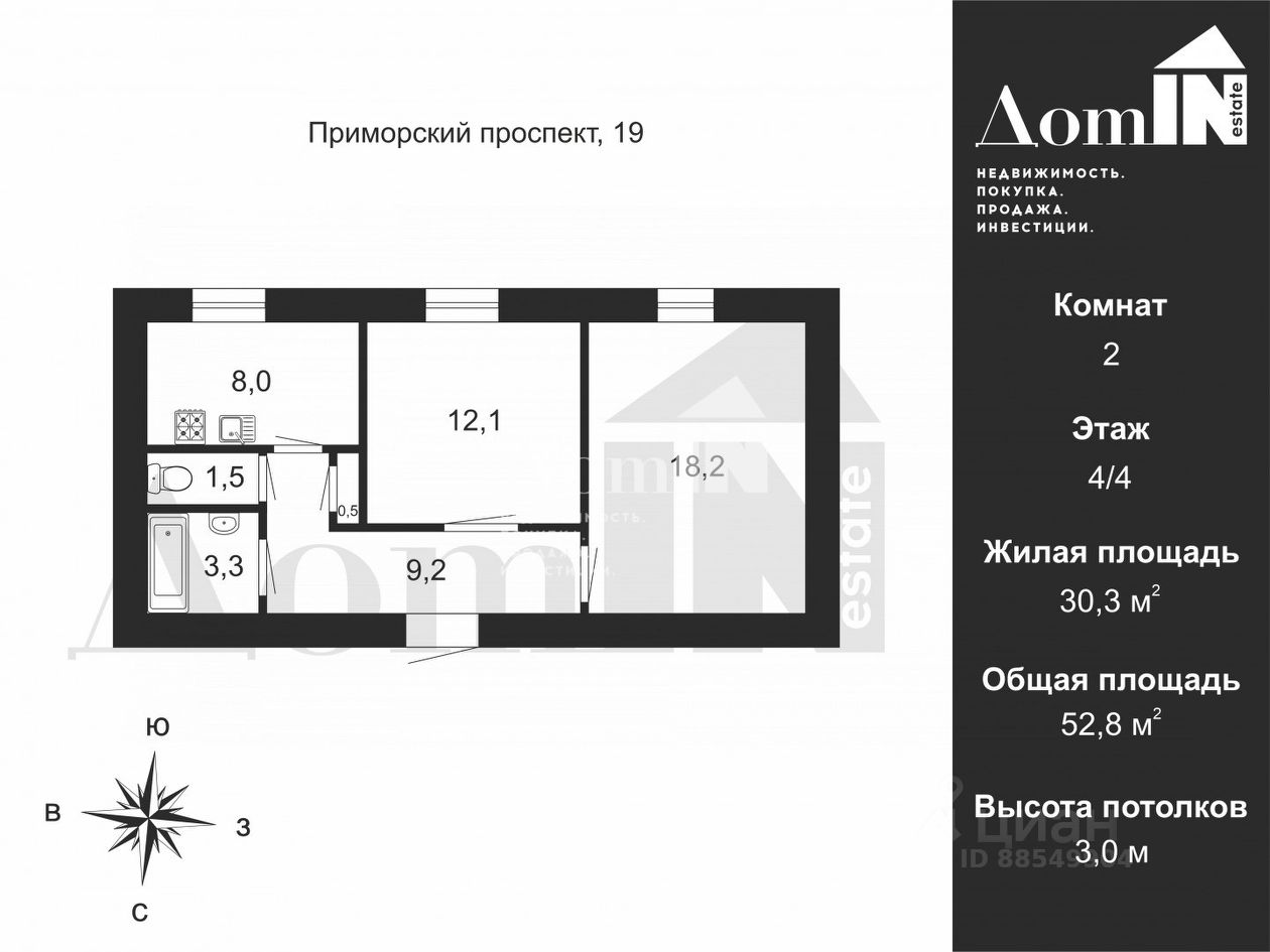 Арт. 121067410 Видовая двухкомнатная квартира в пешей доступности до станции метро '' Черная речка'' ждет своего покупателя!!!