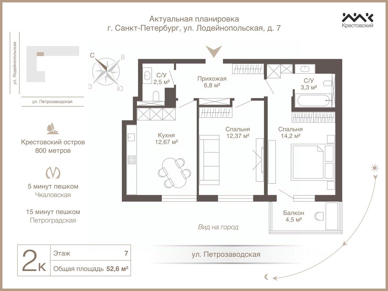 Из окон открываются прекрасные панорамные виды на город, наполняющие пространство светом и ощущением простора. Функциональная планировка предусматривает два отдельных санузла — редкое преимущество для двухкомнатных квартир, повышающее удобство проживания.