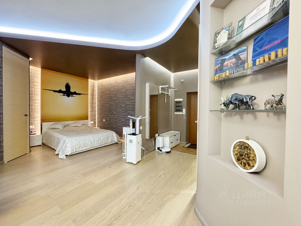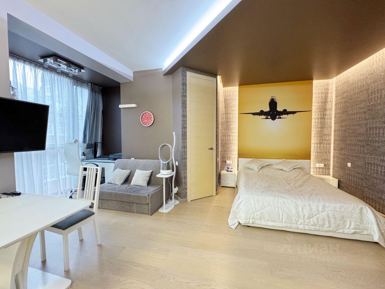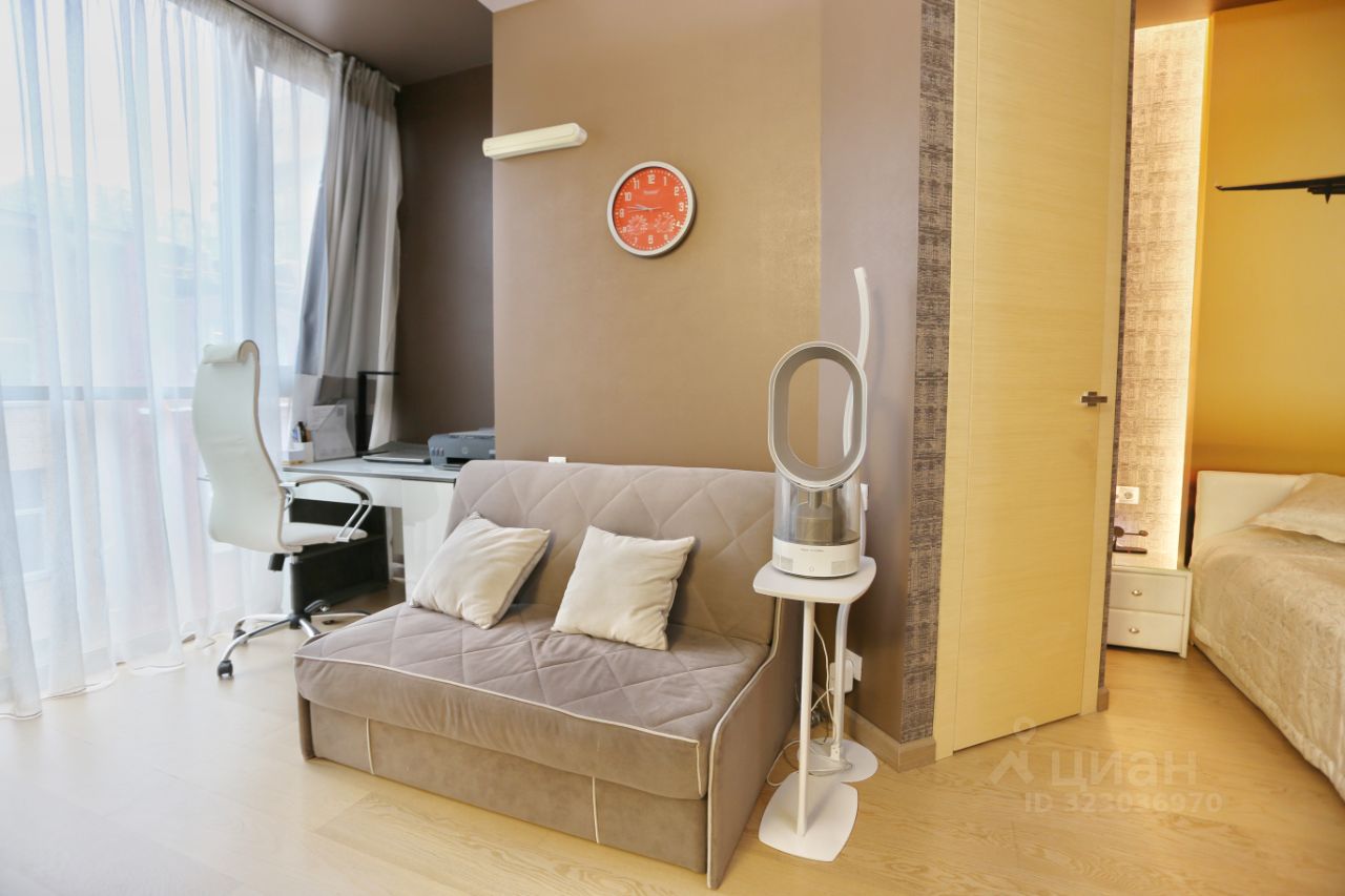 Просторная квартира, большие панорамные окна, светлая комната , высокие потолки. Сделан современный ремонт, встроенная кухня, 2-е гардеробные, рабочее место, спальная зона, есть вся необходимая мебель и техника, пространство для благоприятной жизни.