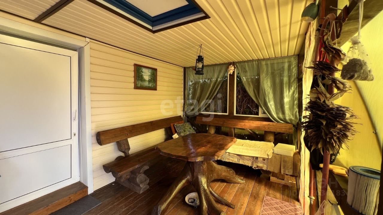 Дом из бревна (157.1 кв.м.) на участке 1100 кв.м., всё в собственности. 2 этажа с просторными комнатами, 2 санузлами, большой кухней с гостиной, гардеробными и верандой. Удобное планирование: 1 этаж (1 часть) - кухня-гостиная 29.8 кв.м., санузел, гардеробная. 1 этаж (2 часть) - 2 комнаты (19.1+9.8 кв.м.), санузел, подсобка. 2 этаж - 4 комнаты (18.1+17.0+9.5+8.5 кв.м.) с гардеробными в каждой, санузел. Оснащение: Электрическое и дровяное отопление, газ (котел готов к подключению), бойлер, центральное водоснабжение, септик. Шикарная баня с бассейном, хоз.постройки, большой гараж, теплица, мангал. Ухоженный участок: грядки, клумбы, плодовые деревья. Забор из профнастила с электрическими воротами. Развитая инфраструктура посёлка: школа, детский сад, больница, почта, церковь, магазины, ж/д вокзал. Экологически чистый район: 5 озёр, сосновый лес. Хорошее транспортное сообщение: 35 км до г. Кириши (маршрутка, электричка), 180 км от Санкт-Петербурга.