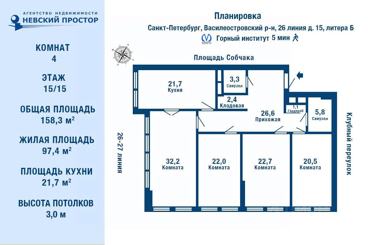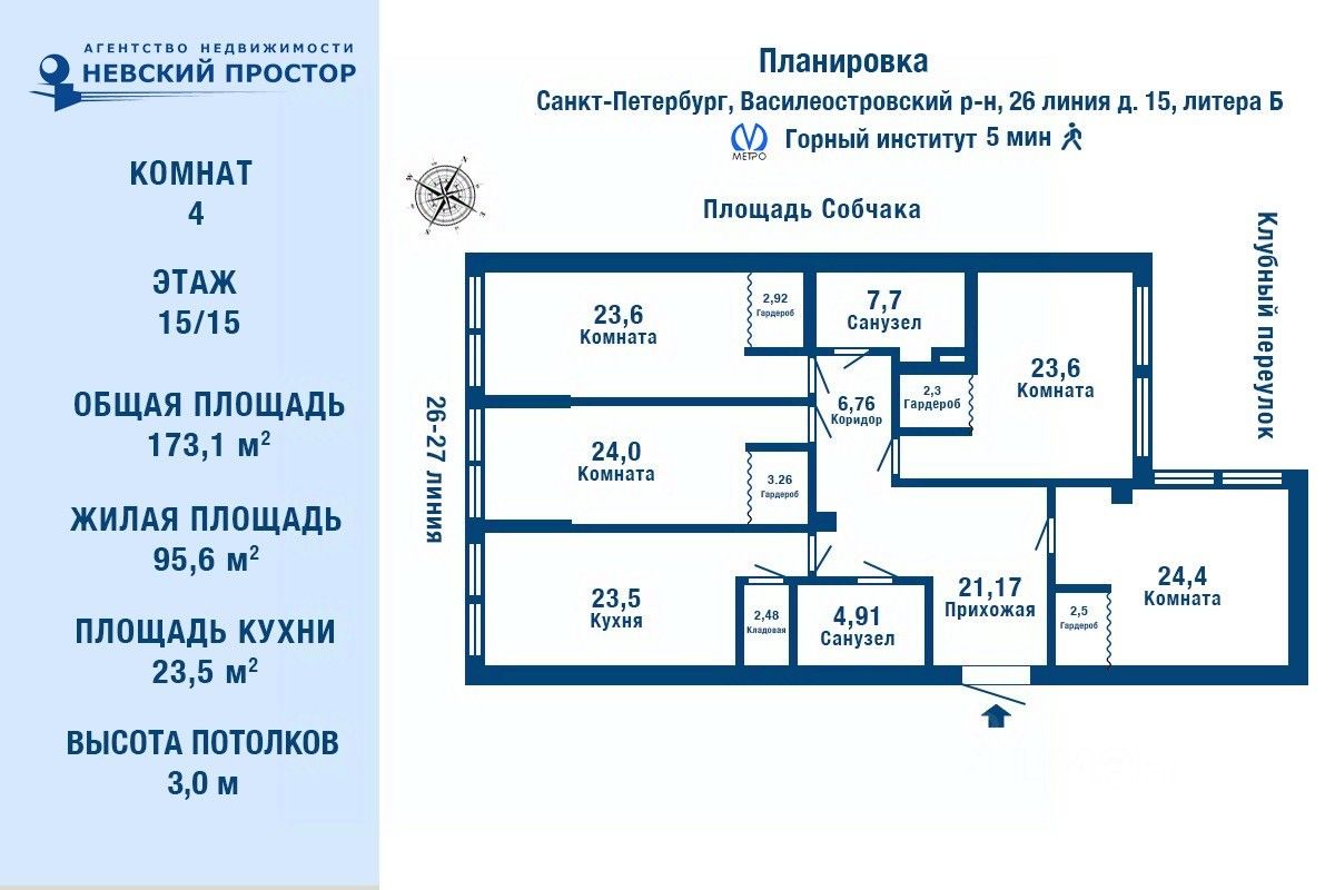 В Жилом Комплексе Престиж. Просторная квартира с классической планировкой расположена в самом сердце Васильевского острова. Для тех, кто не ищет компромиссов между статусом, комфортом и уникальностью Идеально подойдёт как: ''Квартира выходного дня'' — для тех, кто ценит тишину, отдых и роскошь Премиальный арендный объект — высокий спрос на посуточную аренду среди VIP-гостей, для свадеб, фотосессий и бизнес-визитов премиальная городская инфраструктура Это не просто пентхау, это — статусная локация, актив с высоким потенциалом дохода, и пространства отдыха. Роскошная квартира в построенном доме - это ваш шанс приобрести современное жилье с высокими стандартами качества. Планировка включает в себя просторную кухню, спальни, гардеробные. Из окон квартиры открываются виды на архитектурные исторические доминанты города. Просторные комнаты с высокими потолками и панорамными окнами создают ощущение легкости и свободы. Имеется развитая торгово-социальная инфраструктура ,благоустроенные набережные и виды на Финский залив. В непосредственной близости станция Горный институт. Дом оснащен системой контроля доступа и видеонаблюдения ,а также централизованной системой кондиционирования. Торг. ********************************* Почему нужно работать с агентством недвижимости ''Невский Простор''? Услуги сертифицированы Российской Гильдией Риэлторов (РГР). Профессиональная ответственность застрахована. СПАО ''ИНГОССТРАХ'' вернёт до 10 млн. руб. в случае утраты права собственности. Бесплатное юридическое сопровождение сделки. Помощь в одобрении ипотеки.