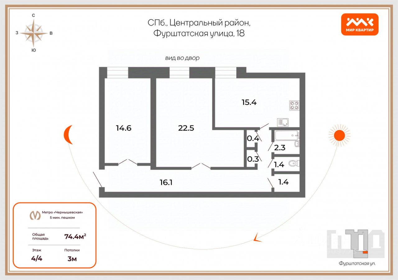 Это не просто квартира, это стиль жизни! Здесь, в доме на Фурштатской, время течет иначе. Здесь соединяются величие прошлого и комфорт настоящего. Почему вам стоит выбрать именно этот дом? Место, где рождаются легенды: Проживание в историческом центре это не просто адрес, это статус. Это возможность прикоснуться к великому прошлому Петербурга, чувствовать его ритм и энергию каждый день. Культурный центр вселенной у вашего порога: Музеи, театры, ''Цирк на Фонтанке'', Спас на Крови, Михайловский замок всемирно известные достопримечательности, которые вы сможете посещать когда захотите. Погрузитесь в мир искусства и вдохновения! Пространство для жизни и творчества: 74,4 квадратных метра это не просто площадь, это возможность создать свой идеальный мир. Две просторные спальни (14,6 +22,5) м2, уютная кухня, высокие потолки, наполненные светом здесь есть все для комфортной и счастливой жизни. Надежность, проверенная временем: Реконструкция 1975 года с заменой несущих конструкций и железобетонными перекрытиями гарантия долговечности и безопасности вашего дома. Тишина и спокойствие в центре мегаполиса: Всего по два владельца на этаже никакого шума и суеты, только тишина и уединение. Комфорт в каждой детали: Все необходимое для комфортной жизни детские сады, школы, поликлиники находится в шаговой доступности. Ваши выгоды: Прямая продажа: Быстро удобно безопасно. Один собственник: Чистая история, никаких подводных камней. Никто не прописан: Вы первый и единственный хозяин. Полная стоимость в договоре: Прозрачность и защита ваших интересов. Хватит мечтать о жизни в Петербурге! Позвольте себе жить в нем!