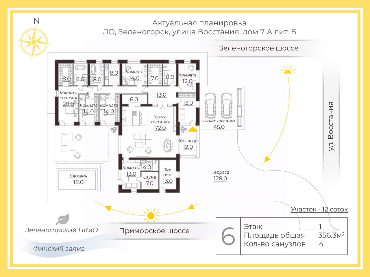 1. Элитное расположение: Участок расположен в тишине векового соснового бора, между Приморским и Зеленогорским шоссе. До чистых песчаных пляжей Финского залива несколько минут приятной прогулки. Природа и приватность — Ваши ежедневные спутники. 2. Архитектура с именем: Дом возведен по проекту шведской архитектурной мастерской Semrn & Mnsson. Это гарантия продуманной планировки, надежности конструкций и эстетики, выдержанной во времени. Новый дизайнерский ремонт выполнен с безупречным качеством, с использованием премиальных европейских материалов и инженерных решений. 3. Простор и свет: Площадь дома 360 м². Великолепная кухня-гостиная с высотой потолков 5.5 метров и панорамным остеклением в пол создает ощущение простора и единения с природой, наполняя интерьеры светом. 4. СПА-комплекс с баней и подогреваемым бассейном под открытым небом идеальное место для отдыха и восстановления сил в любое время года. 5. Функциональная Планировка для Комфортной Жизни: * Просторная мастер-спальня с выходом на террасу * 4 светлые и уютные спальни (идеальны для детей или гостей) * Кабинет для работы или уединения * 4 современных санузла с качественной сантехникой * 2 вместительные гардеробные * Техническое помещение со всей необходимой инженерией высшего класса. 6. Участок 12 соток ИЖС. Территория безупречно обустроена: профессиональный дренаж, подключенный к городской ливневке, обеспечивает сухость. Есть элегантный навес на 2 автомобиля, качественная детская площадка и привлекательный ландшафтный дизайн. 7. Бесперебойность и Комфорт: Все коммуникации — центральные городские (газ, вода, электричество, канализация). Никаких хлопот, только комфорт и надежность. 8. Инфраструктура Рядом: В доступности вся необходимая инфраструктура Зеленогорска - от гастрономии и магазинов до школ, детских садов и зон отдыха.