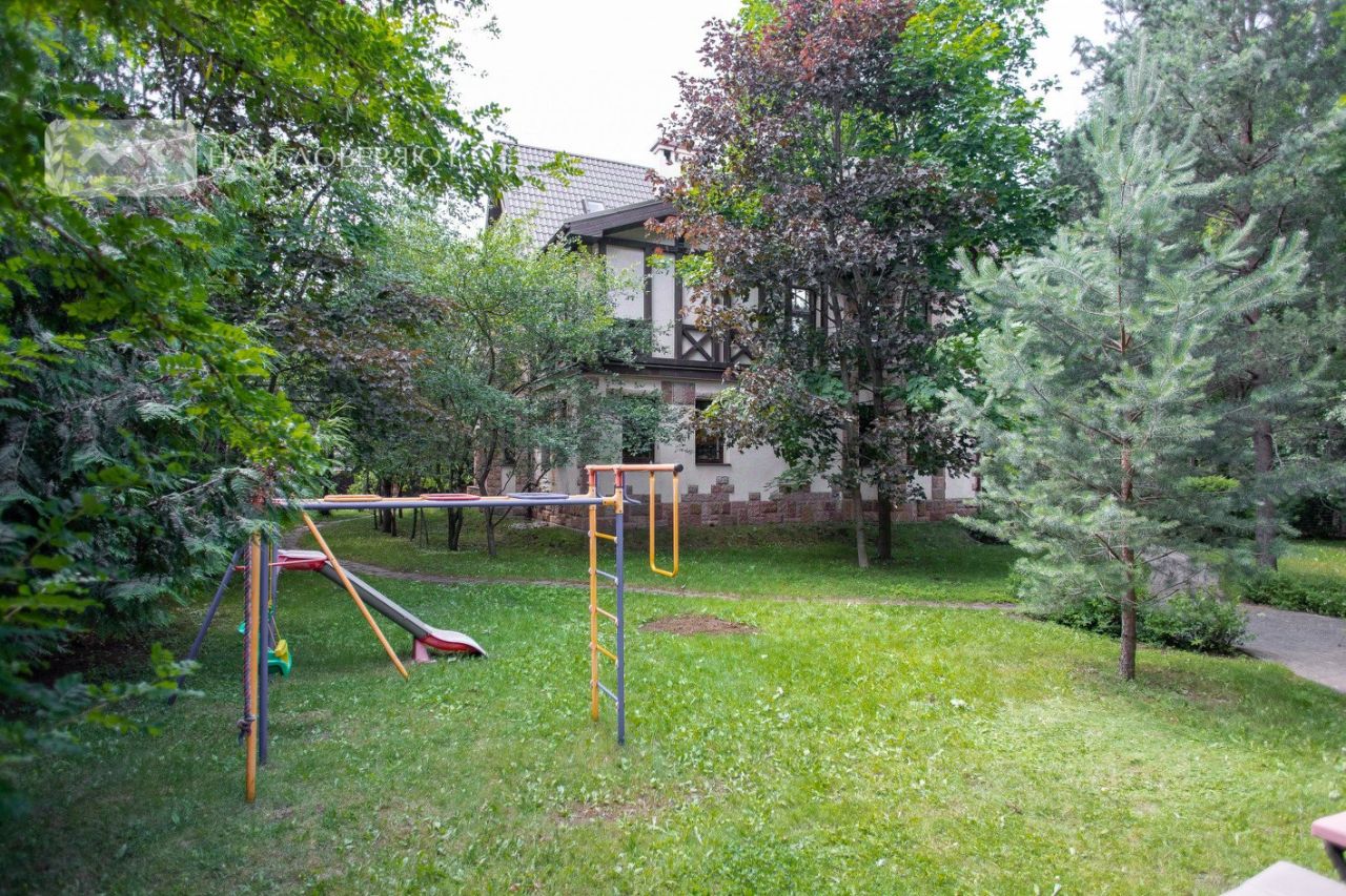 На просторном и ровном участке в 18 соток обустроена гостевая парковка, детская площадка, фонтанчик, взрослые деревья, цветники и кустарники с автоматической системой полива.