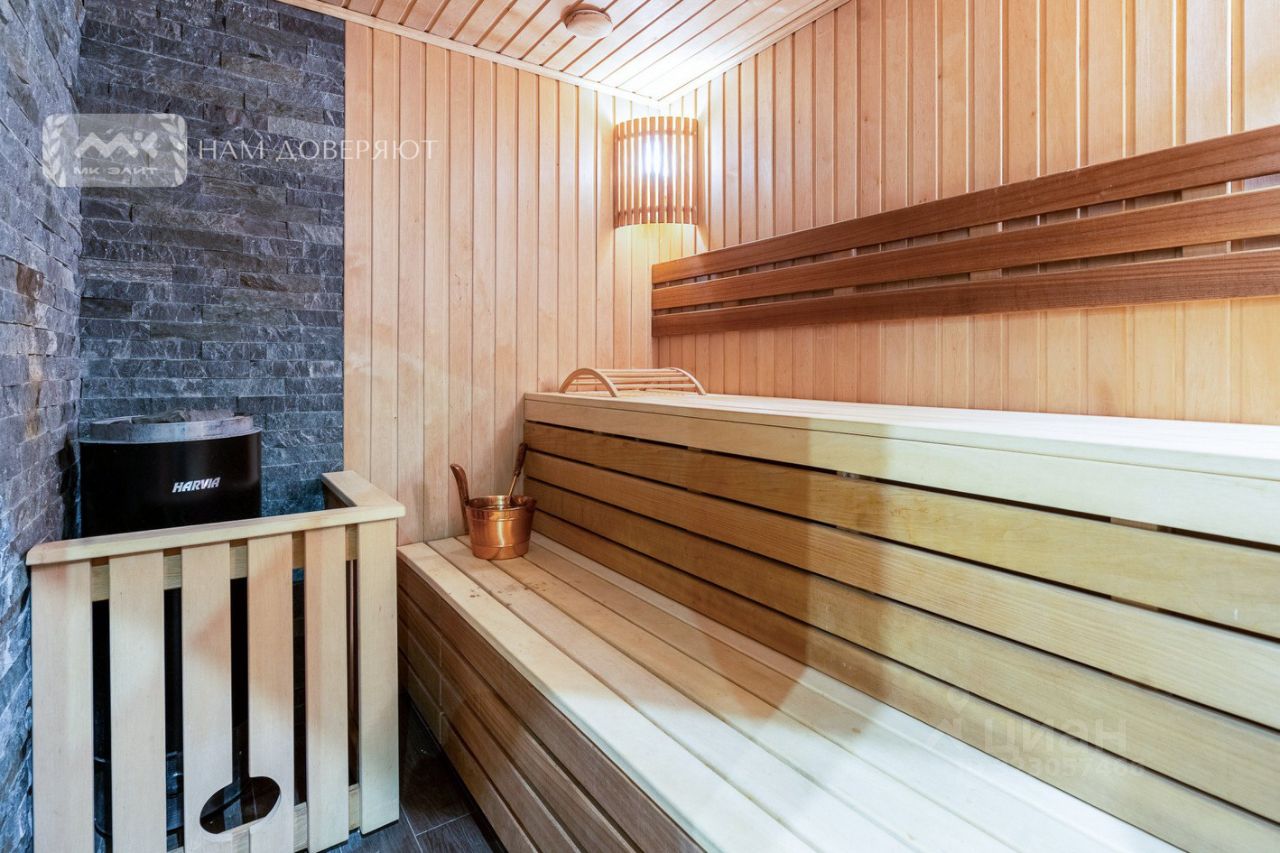 Площадь дома 293м2 включает в себя: Первый этаж: 'Кухня-столовая 18 м2 укомплектована современной техникой известных брендов, 'Гостиная 30 м2 с камином и вторым светом высотой 5,5 метра, 'Кабинет 20 м2, который можно использовать в качестве четвёртой спальни, 'Большой гостевой санузел. Второй этаж: 'Мастер спальня 25м2 с выходом на террасу. Из ванной комнаты - выход на балкон, 'Две спальни по 18м2 с отдельным санузлом. Цокольный этаж: 'СПА с гидромассажным бассейном, сауной и хамам, 'Укомплектованная постирочная, кладовая, 'Помещения технического обслуживания с отдельным входом и удобствами, 'Гараж.