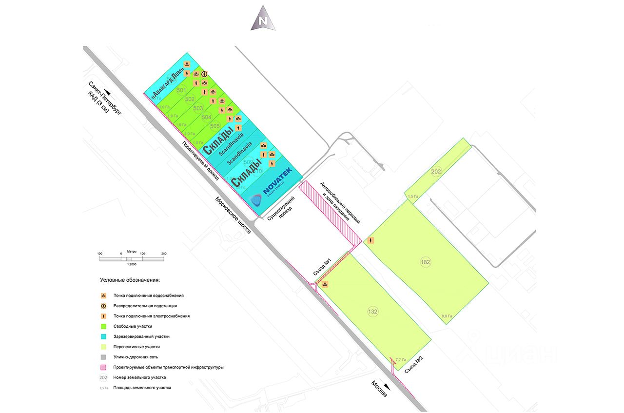 ОПИСАНИЕ УЧАСТКА: Правовой статус - собственность. Категория земель - Земли населённых пунктов. Вид разрешенного использования - для сельскохозяйственного использования (оставлена сельхозка для минимизации налогообложения, меняется в нужный ВРИ по заявлению в течении 1 месяца). Примыкание к дороге - 1-я линия Московское шоссе, на стороне выезда из СПб, в 3 км от КАД. Коммуникации - все проходят по дальней от Московского ш. стороне участка. Электричество 150 кВт входят в стоимость и уже заведены на каждый участок, есть возможность увеличения мощности. Водоснабжение и водоотведение - городские сети, точка подключения на каждом участке, оплачиваются отдельно в зависимости от необходимых мощностей. Газоснабжение - точка подключения на каждом участке, оплачиваются отдельно в зависимости от необходимых мощностей.