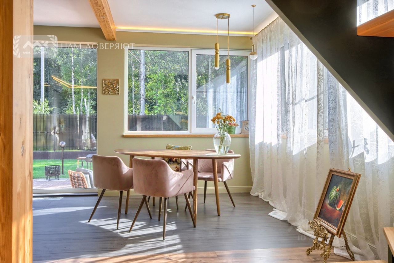 О Доме: Дом поострен из качественных натуральных материалов с использованием современных технологий строительства. Стены толщиной 250 мм ,выполнено внешнее утепление + звукоизоляция. Фасад минеральная штукатурка, натуральный планкен из лиственницы и цоколь из искусственного камня. В доме продуманная эргономичная планировка, установлены окна в пол. Когда находишься в зоне кухни-гостинной, открывается полный обзор на лес. Выполнен дизайнерский ремонт, установлена мебель + техника высокие потолки - много света.