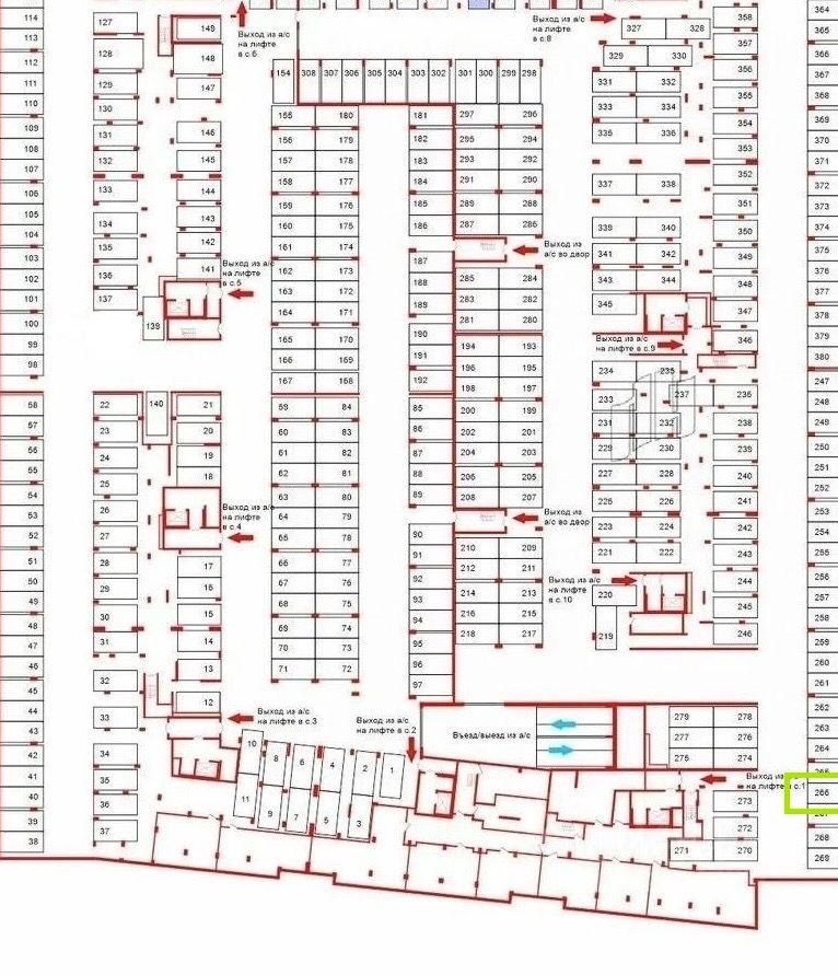 Место под 1й парадной ! паркинга 266 выделено на плане зеленым. Сразу рядом выезд