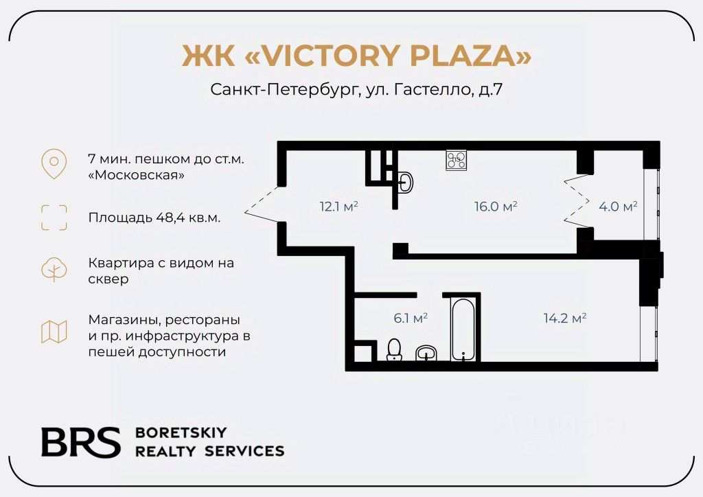 Арт. 88804497. Продаётся квартира формата 2-евро на втором этаже Жилого комплекса Victory Plaza с видом на живописный сквер.