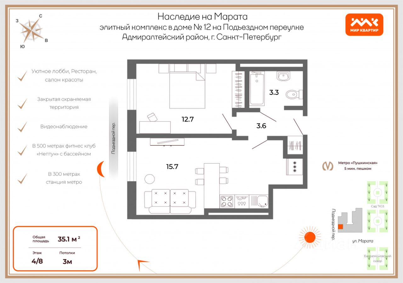 Арт. 68412260 В устье улицы Марата, ранее именуемой Преображенской, на пересечении с Подъездным переулком, в окружении скверов построен новый респектабельный комплекс апартаментов для жизни - ''Наследие на Марата''.