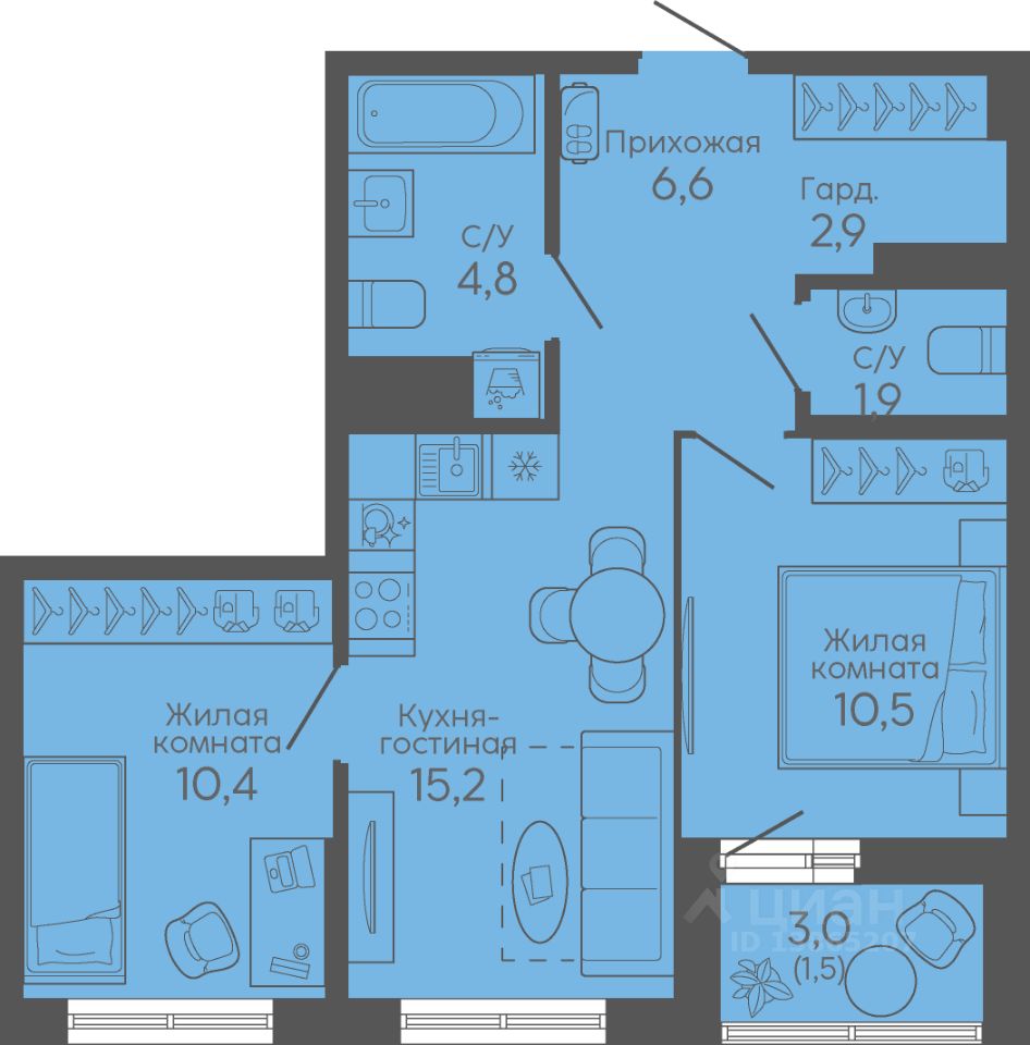 Общая площадь53,8 м2