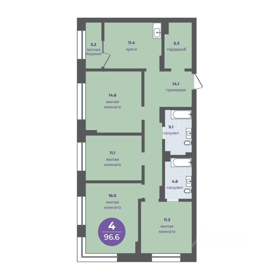 Общая площадь93,4 м2