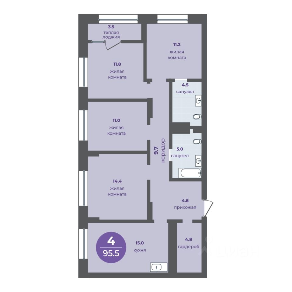 4-комнатная квартира на 13 этаже в 17-этажной секции прогресс-кварталов ''Перемены''.