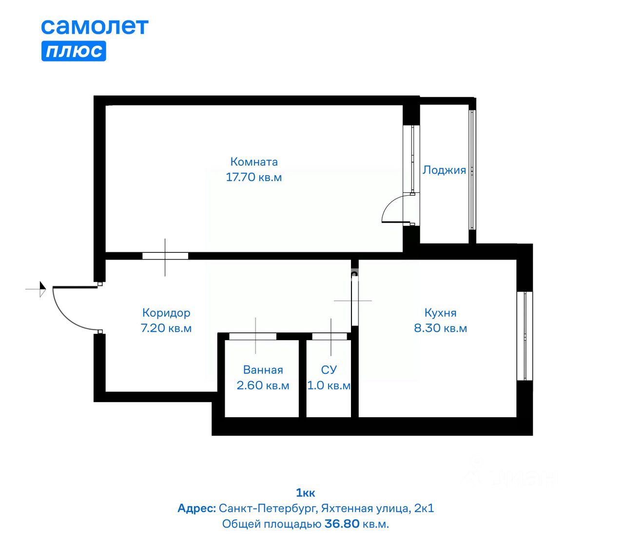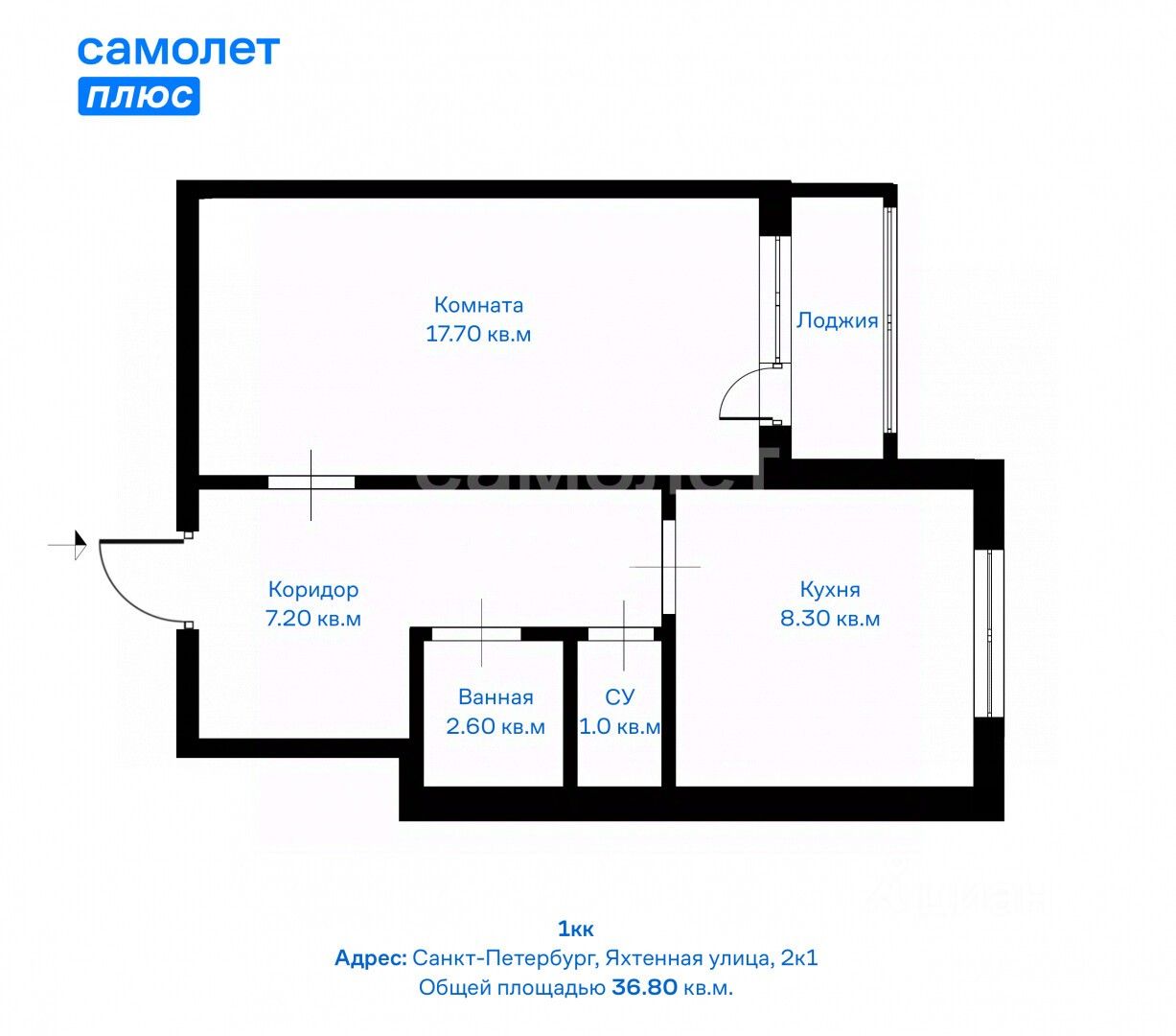 О КВАРТИРЕ: Общая площадь - 36.8 кв.м. Жилая площадь - 17.7 кв.м. Кухня - 8.3. кв.м. Коридор - 7.2. кв.м. Санузел раздельный - 4 кв.м. + 1 кв.м. Лоджия.