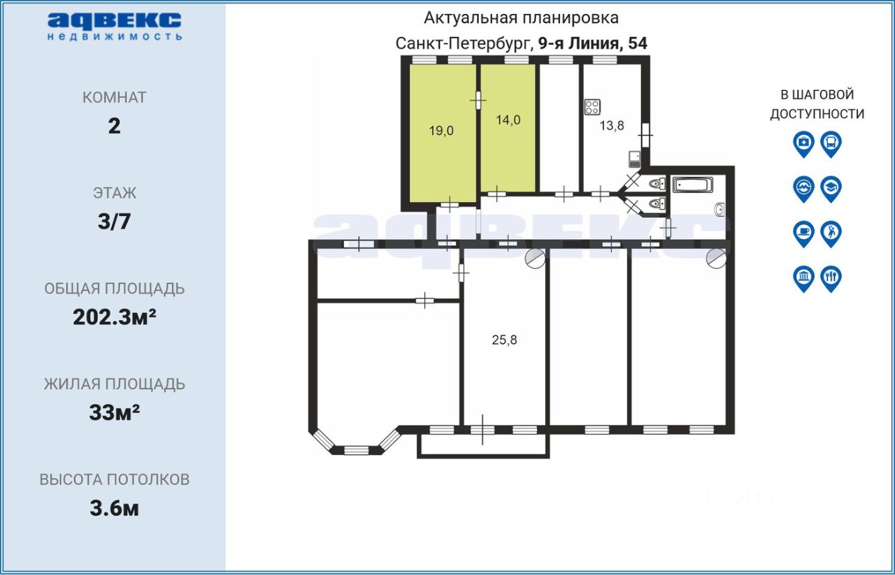 ID: 1787833 Продаются две изолированные комнаты 19 кв м и 14 кв м. в малонаселенной квартире., но при желании они могут быть проданы по отдельности. Дом арх. Маккензен К. , 1905г. Стиль неоклассицизм. В комнатах сохранена лепнина. Высокие потолки 3, 6 м и при желании можно сделать второй этаж. Квартира чистая , опрятная. В этой квартире продаётся ещё одна комната 25,8 кв . м с выходом на балкон и видом на церковь Пресвятой Богородицы, действующая, освещённая в 1762г. В одной из продаваемых комнат 2 окна , в другой 1 окно. Во двор. Соседи спокойные и дружелюбные, проживают ещё три человека. В квартире имеется общая технологическая комната МОП с окном. В квартире два входа - один на улицу, другой во двор , есть возможность разделить квартиру на две не зависимые квартиры, каждая со своим входом. Двор дома озеленён, с площадкой для отдыха. Район с многовековой историей. В пешей доступности дет . сады, лицей федерального значения физико-математический N30, гимназия N32, университет. Магазины, поликлиника- всё в рядом. Метро ''Василеостровская'' 7 пеш. , метро ''Спортивная'' 12 мин пеш. , метро ''Горный'' 4 тр. Парадная- домофон, лестница широкая, аккуратная, . лёгкая на подъем. Нотариальные отказы на руках. Активное место города для энергичных людей. Это Ваш правильный выбор! Звоните. Договоримся! Елена.
