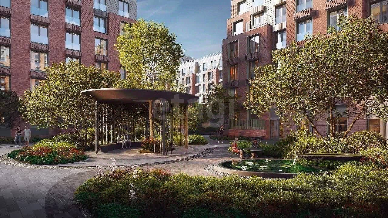 Фасад здания выполнен из клинкерного кирпича с архитектурной подсветкой, придающей комплексу респектабельный облик. Придомовая территория благоустроена с водными объектами, пешеходным променадом и зонами отдыха для детей и взрослых, включая спортивные площадки. Внутренние пространства организованы с учетом комфорта жильцов: закрытый двор, дизайнерская отделка входных групп, современные лифты и колясочные. Дополнительные удобства включают подземный паркинг, коммерческие помещения и кладовые, а также систему умного дома для управления доступом и инженерными системами.