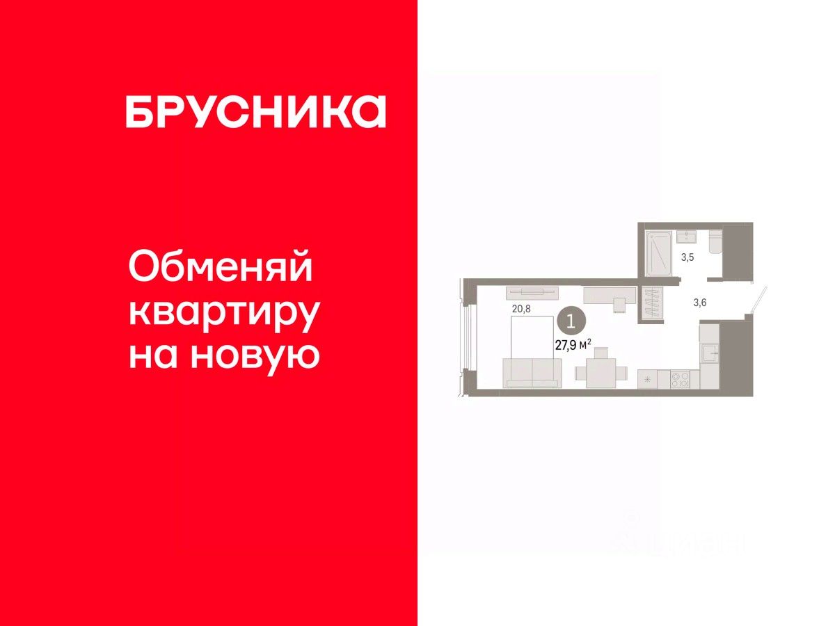 Студия в квартале ''На Некрасова''. Особенности планировки: предчистовая отделка. квартиры в нашей базе: НКР02-Ж1.10.2.