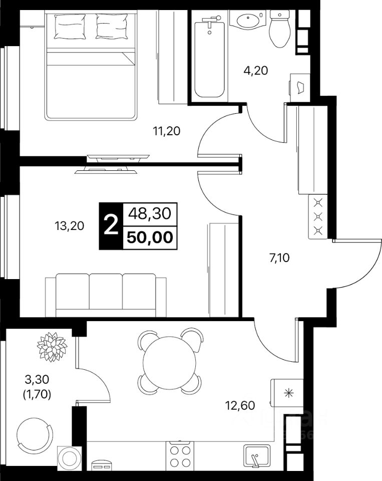 Общая площадь50 м2