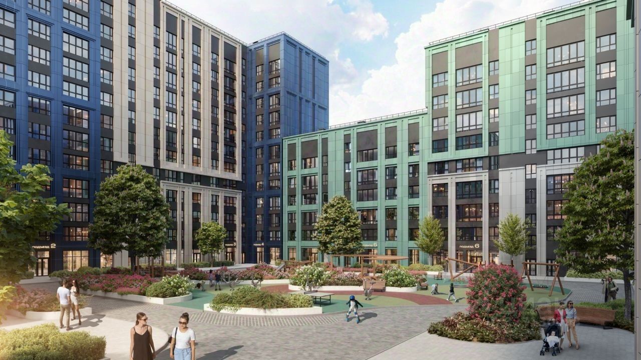 Многосюжетные дворы Каждый двор — это уникальное предложение, пространство для спокойного и активного отдыха, увлечений и спорта: спортивные площадки, зоны для аэройоги, уличная библиотека, площадка для кино, летний театр для уличных представлений. В квартале запроектированы 7 дворов, каждый из которых посвящен определенной эмоции.