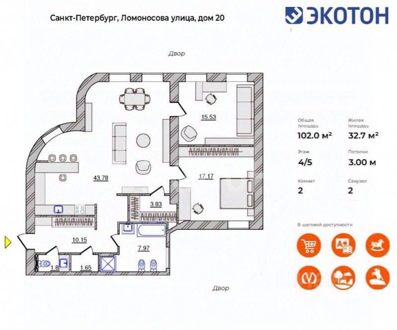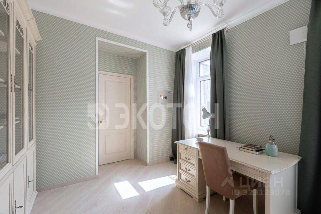 Арт. 122833375 Продается просторная, светлая квартира евротрёшка с дизайнерским ремонтом! Квартира 101,2 кв.м., расположена на 4 этаже тёплого кирпичного дома, прошедшего капитальный ремонт в 1962 году (перекрытия железобетонные). Планировка включает в себя просторную кухню-гостиную 43,7 кв. м., спальню, кабинет, 2 санузла, гардеробную и кладовую. В квартире выполнен капитальный ремонт с полным демонтажем и заменой коммуникаций. Квартира двухсторонняя, окно спальни смотрит в зеленый двор - нет шума машин и городской суеты. Остальные окна в просторный, закрытый двор. Высокие потолки и большие окна наполняют квартиру светом и создают ощущение простора. Установлен кондиционер. Во дворе есть закреплённое парковочное место.