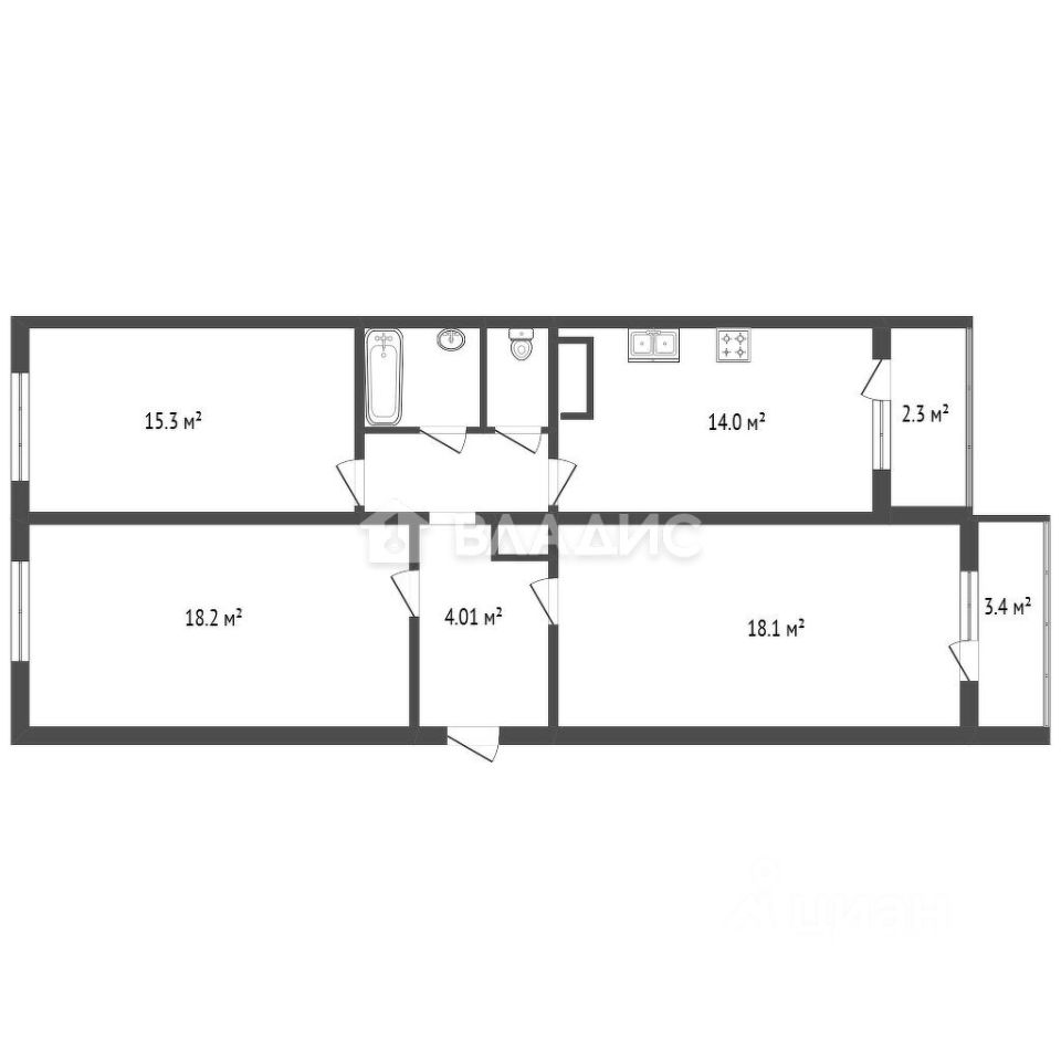 Преимущества квартиры: • Просторная, удобная планировка • Раздельный санузел • Большая кухня • Два балкона • 2 окна выходят на залив и детскую площадку, еще 2 — во двор • Из комнат на южной стороне открывается вид на территорию между дворами и заливом