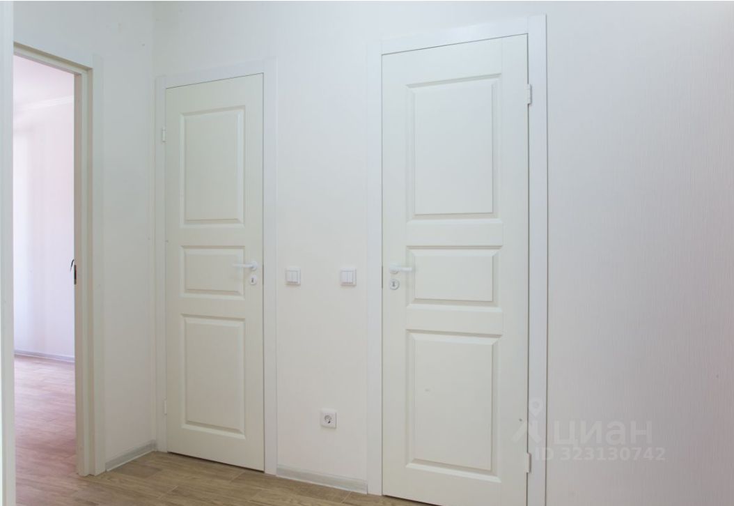 Коридор Пол: плитка светлых тонов Стены: обои под покраску белого цвета Потолок: натяжной Электрика: розетки, выключатели, квартирный щиток, электросчетчик Прочее: дверной блок цвета белый, наличники, фурнитура, входная дверь металлическая с порошковым покрытием и врезным замком