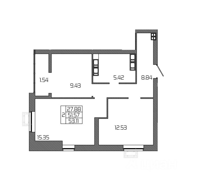 Общая площадь53,11 м2