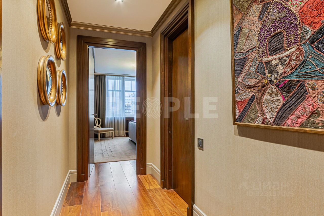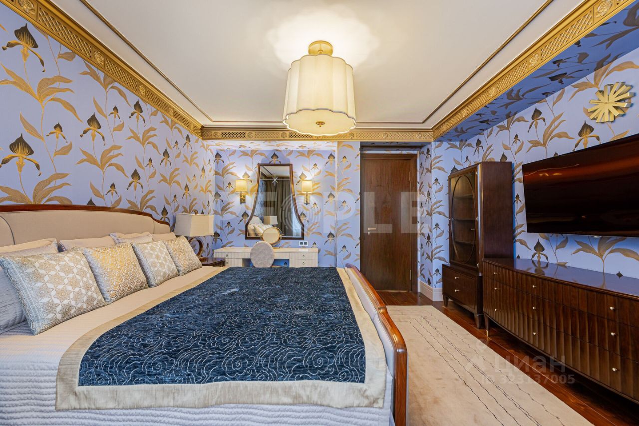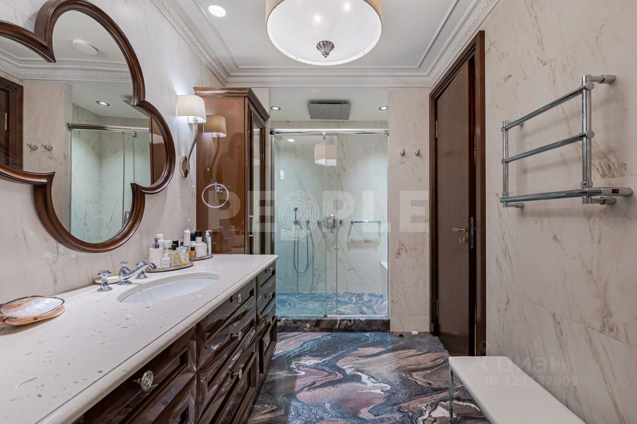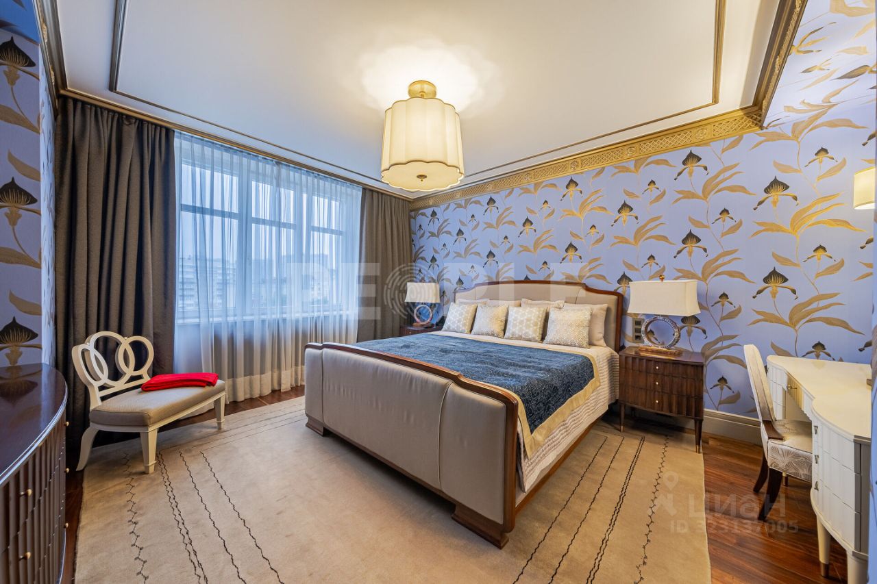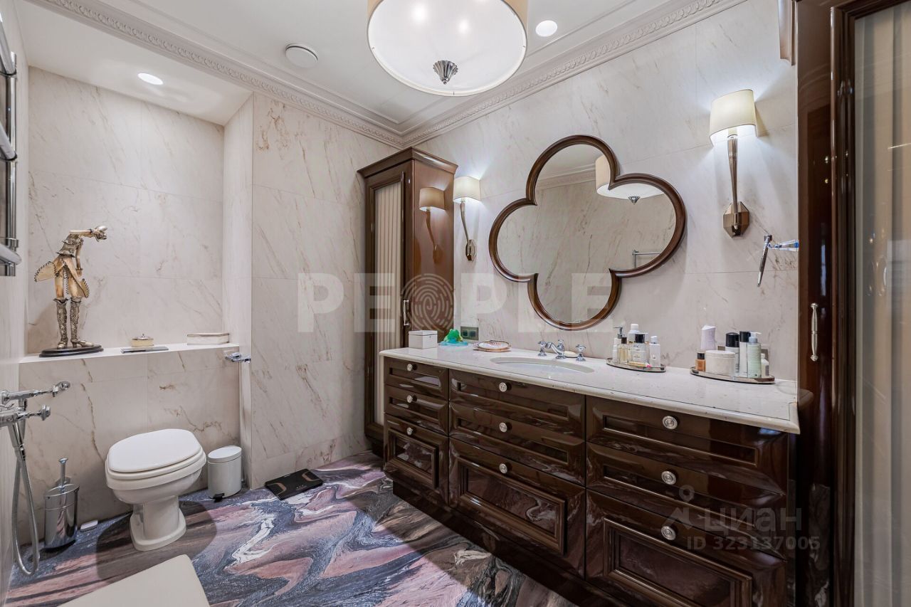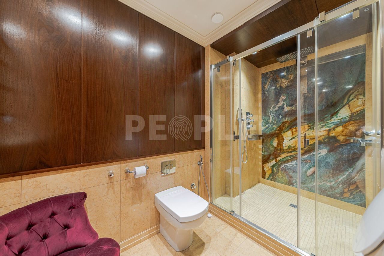 Дизайн квартиры выполнен в стиле Ар-деко по авторскому проекту от известного дизайнерского бюро Самыгин и Самыгин. Отделка с использованием самых дорогих натуральных материалов. Дубовый паркет, стеновые деревянные панели, мрамор, оникс.