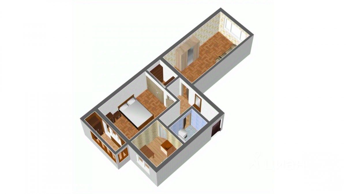 Квартира имеет две изолированные комнаты и кухню 5,3 кв.м, выходят на разные стороны (Юг и Север). В одной из комнат оборудована просторная гардеробная. Совмещенный санузел.