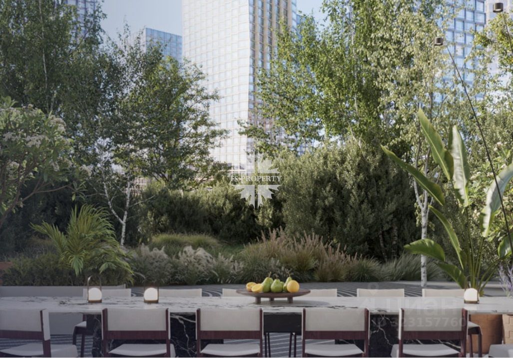 Роскошная внутренняя территория. Во дворе комплекса создан двухуровневый парк на 2 га, выполненный в стиле английского сада, в котором будут расти 650 деревьев и более 2000 кустарников, появится светлая березовая роща и тенистый хвойный лес. Многочисленные зоны отдыха, спортивные и детские игровые площадки делают его идеальным местом для прогулок и встреч с друзьями. Клубная инфраструктура: кинотеатр, детская игровая, зона для йоги и спорта, СПА, beauty-зона, переговорные, общественная терраса и lounge-зона. Отдельные лифты для персонала, почтовые комнаты. Круглосуточное видеонаблюдение на всей территории, современная система контроля доступа с возможностью распознавания лиц. Дизайнерские лобби с потолками 5.5 метров от известного испанского дизайнера Jaimie Beriestain Studio, в портфолио которого проекты мирового уровня Marriott, Regency, Hilton.