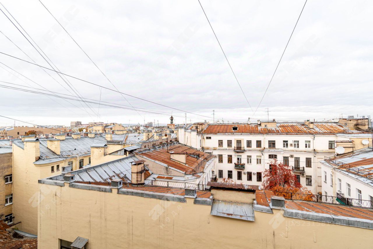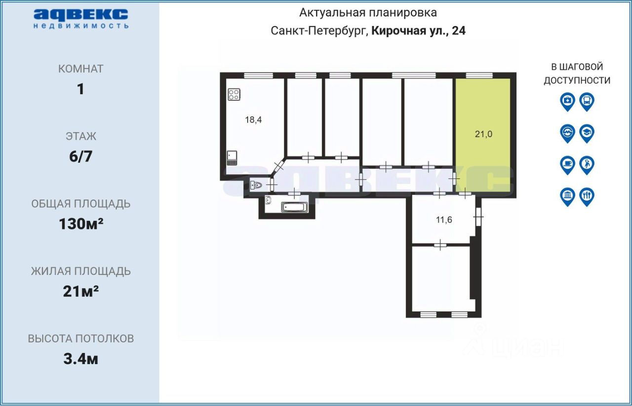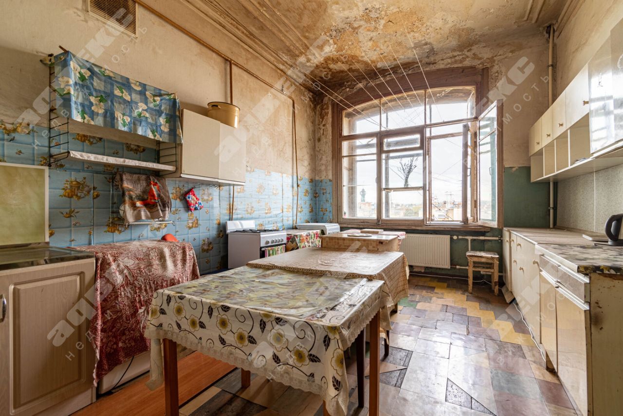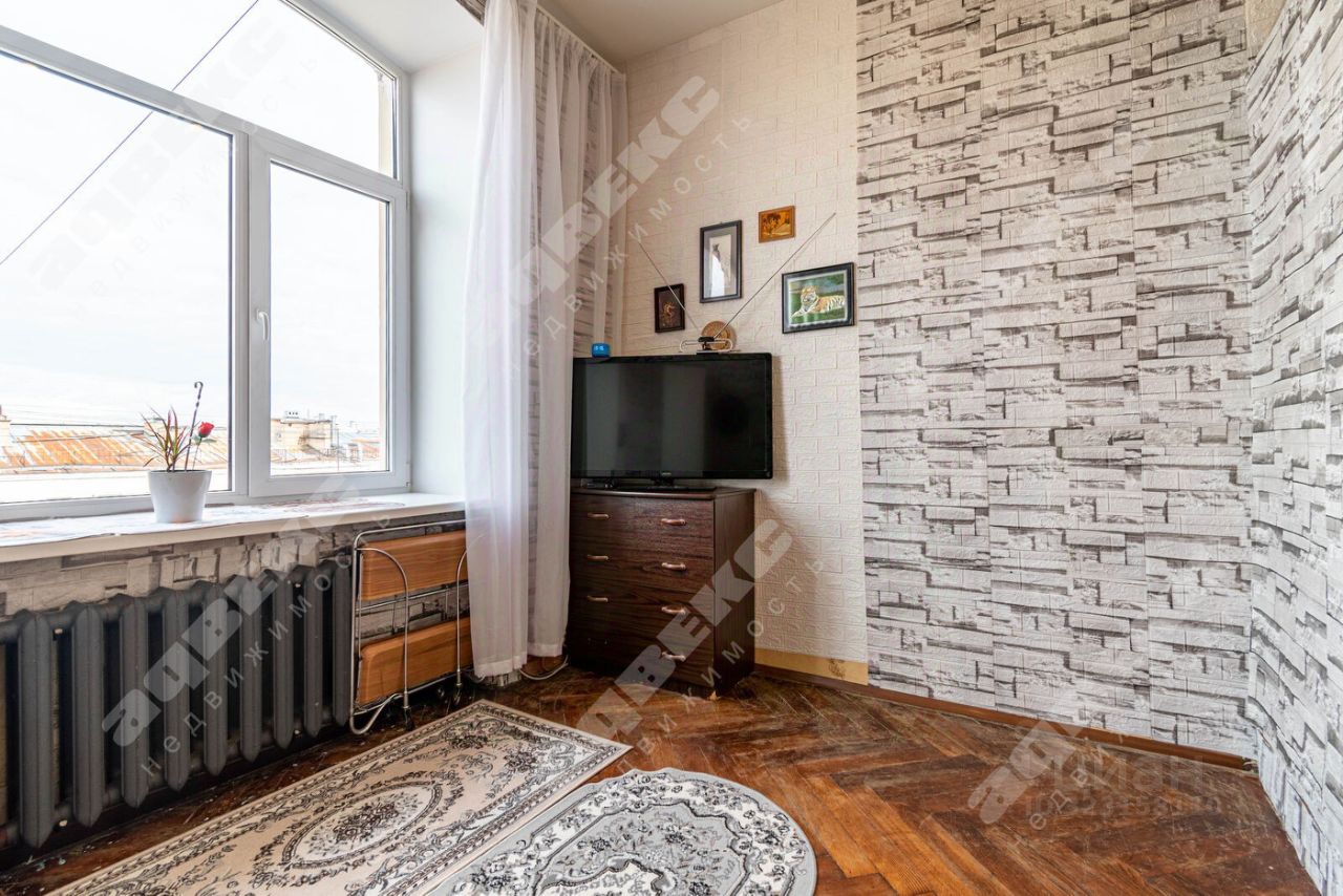 Комната расположена в малонаселенной шестикомнатной квартире и является самой большой в ней по площади. Выполнен косметический ремонт. Комната разделена на две части: спальную зону и гостиную. Расположение на 5 этаже, даёт прекрасную возможность любоваться панорамами крыш Санкт-Петербурга. В доме есть новый лифт. До м.