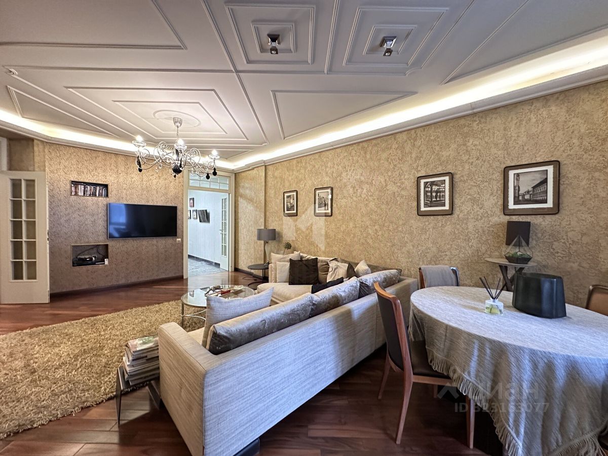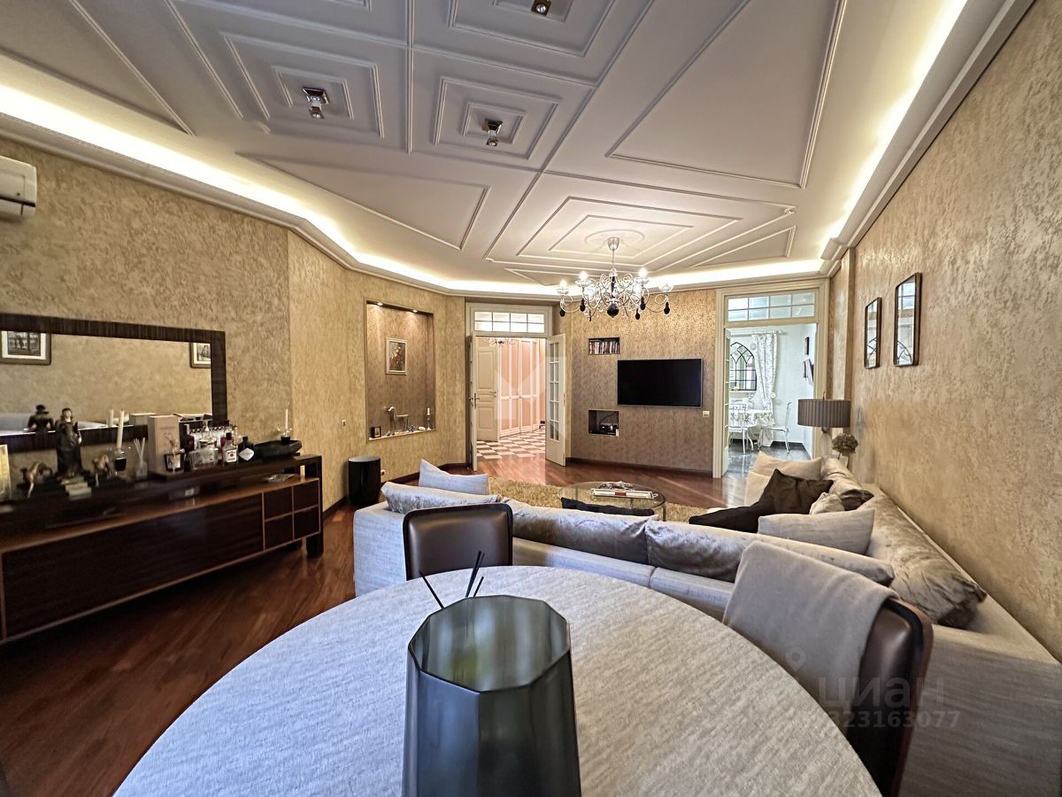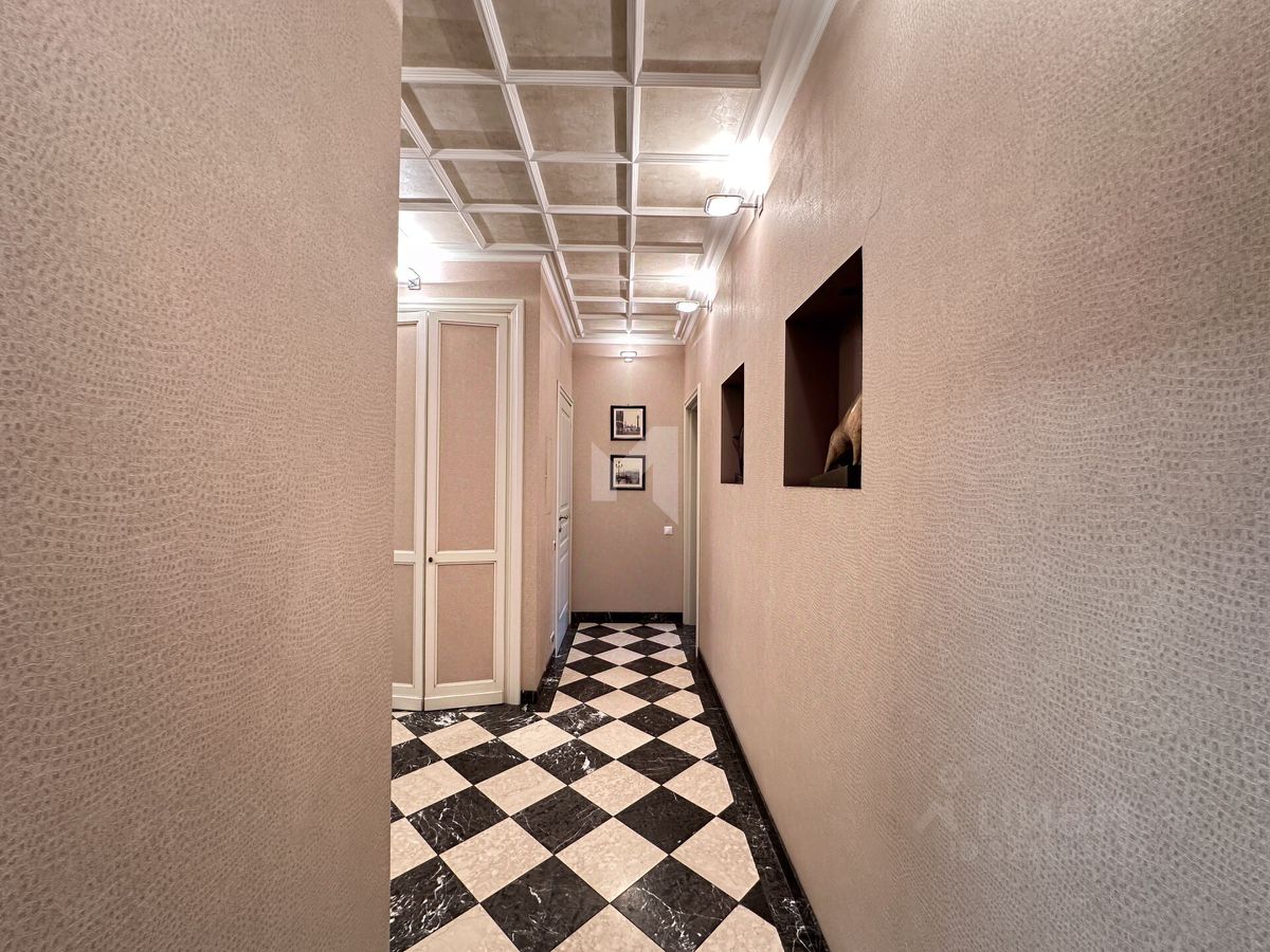 Отделка выполнена профессиональными архитекторами: премиальные напольные покрытия, мебель от ведущих итальянских фабрик, дизайнерские светильники и аксессуары, подчёркивающие статус и уют жилья. Окна выходят во внутренний тихий двор — в квартире сохраняется спокойная и домашняя атмосфера даже в дневное время.