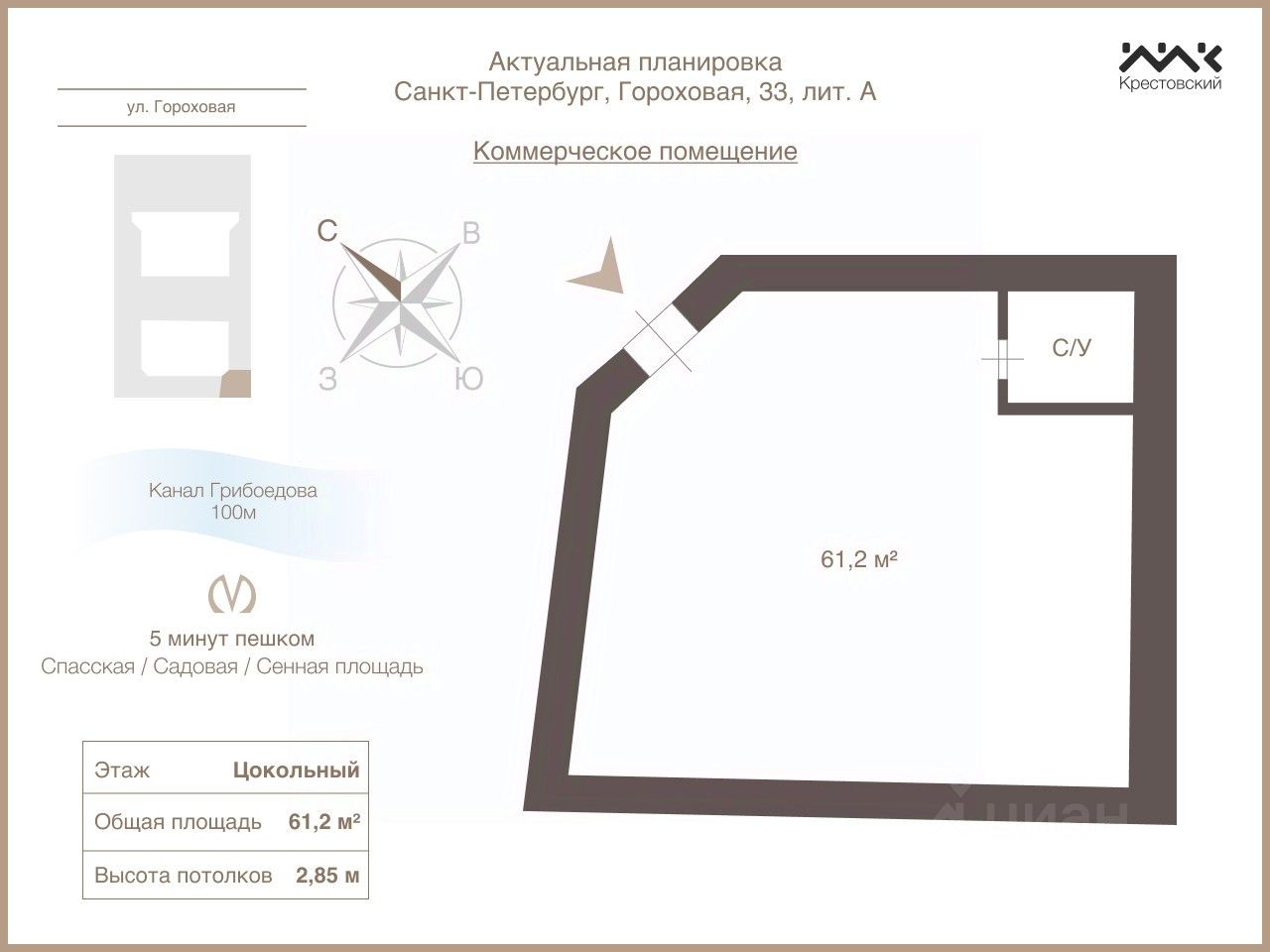 Арт. 122694329 Коммерческое помещение на цокольном этаже с отдельным входом и действующим арендатором — готовый бизнес в одном из самых активных районов Санкт-Петербурга с высоким пешеходным трафиком.
