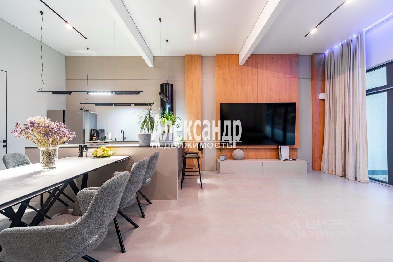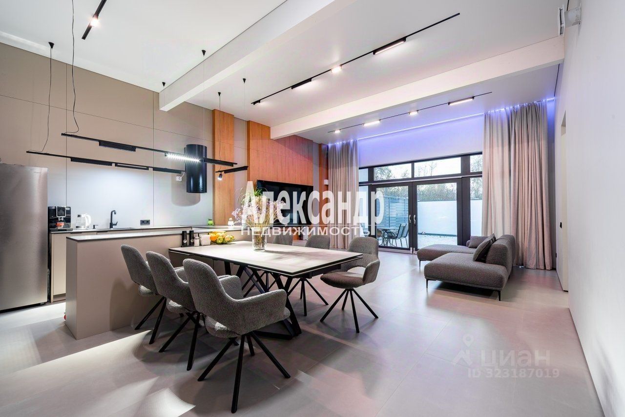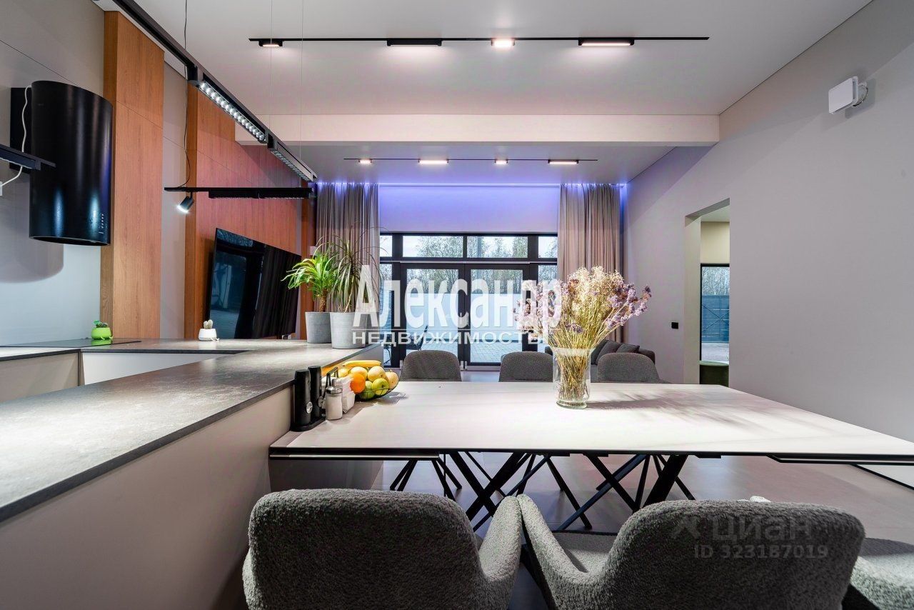 Описание объектов Основной дом (130 м²) Просторная кухня-гостиная с панорамными окнами и выходом на террасу