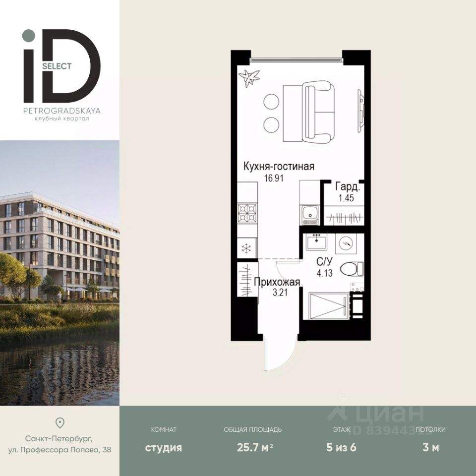 Клубный квартал iD Petrogradskaya на ул. Профессора Попова, 38 объединяет современную архитектуру, удобные планировки и развитую инфраструктуру, предлагая комфортную жизнь в престижном районе Санкт-Петербурга. Из квартир открываются виды на Иоанновский монастырь и реку Карповку. В шаговой доступности три станции метро: ''Петроградская'', ''Чкаловская'' и ''Чёрная речка''. 3-метровые потолки и эксклюзивные планировки создают атмосферу простора и уюта. Внутреннее пространство квартала включает благоустроенные дворы, курдонёры и подземный паркинг. Квартиры площадью от 20 до 136 м² с кухнями-гостиными до 40 м² и террасами с панорамными видами сдаются без отделки, оставляя свободу для индивидуальных интерьерных решений.
