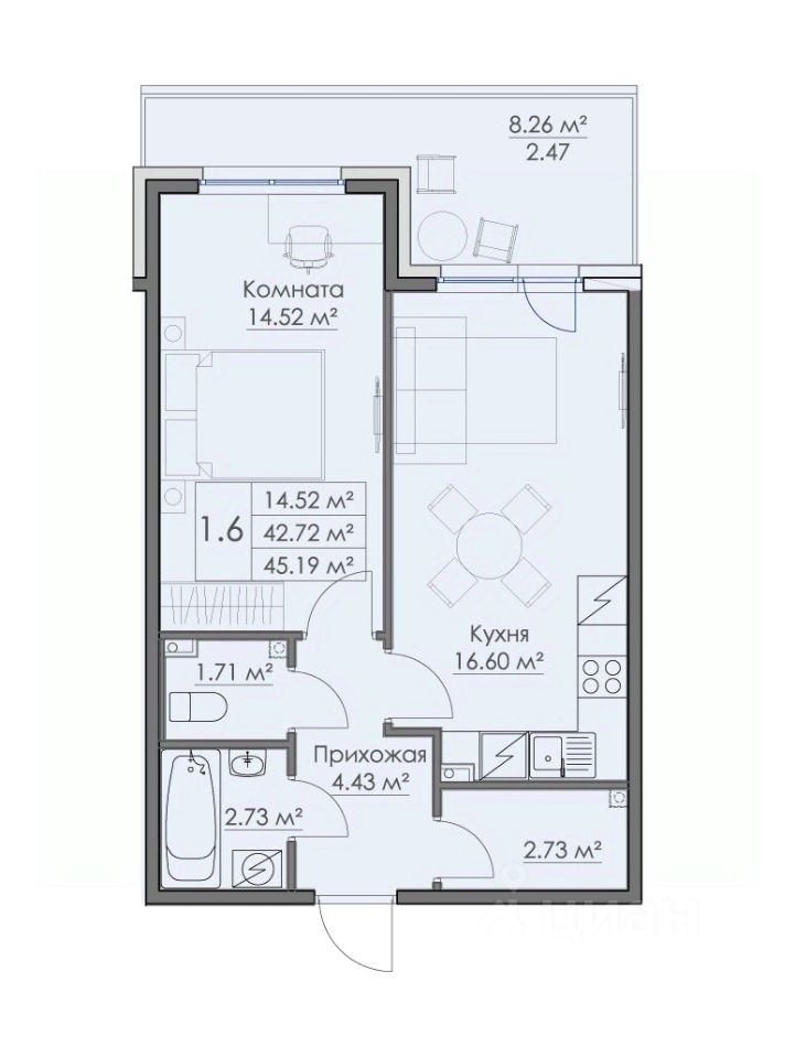 продам 1-к, Адмирала Чичагова набережная, 108 660 150 ₽