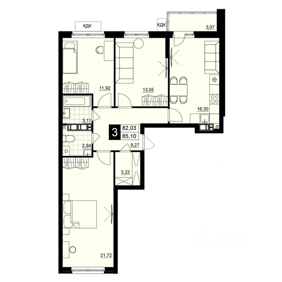 Общая площадь83,57 м2