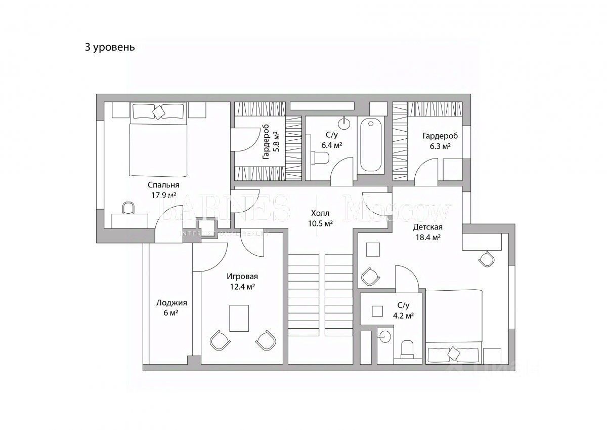 Таунхаус без отделки с возможностью разместить: 1 уровень - просторная гостиная с дровяным камином и зонами столовой и кухни, кабинет, гостевой санузел, холл с гардеробной, 2 уровень 2 мастер-спальни с гардеробными и санузлами, холл, 3 уровень - детская спальня с санузлом и гардеробной, вторая детская с гардеробной и выходом на балкон, санузел, игровая или комната няни, холл, цоколь - комната отдыха с тренажерным залом, техническая кухня, постирочная, санузел, кладовая, котельная.
