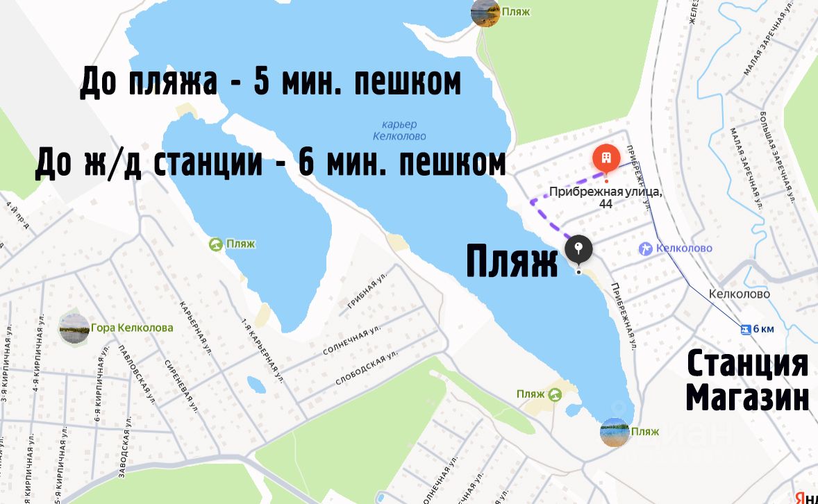 5 минут пешком до Келколовского карьера с кристально чистой бирюзовой водой, 6 минут пешком до ж/д станции 6 км, около 1 часа от Санкт-Петербурга на автомобиле или электричке.
