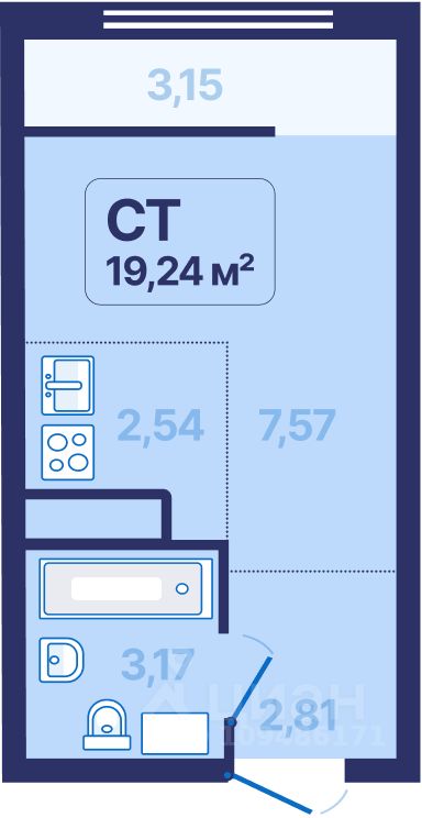 Общая площадь19,24 м2