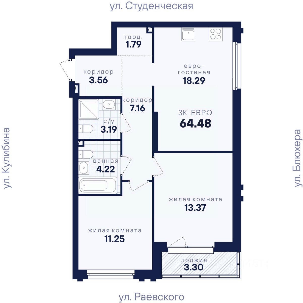 Общая площадь64,48 м2