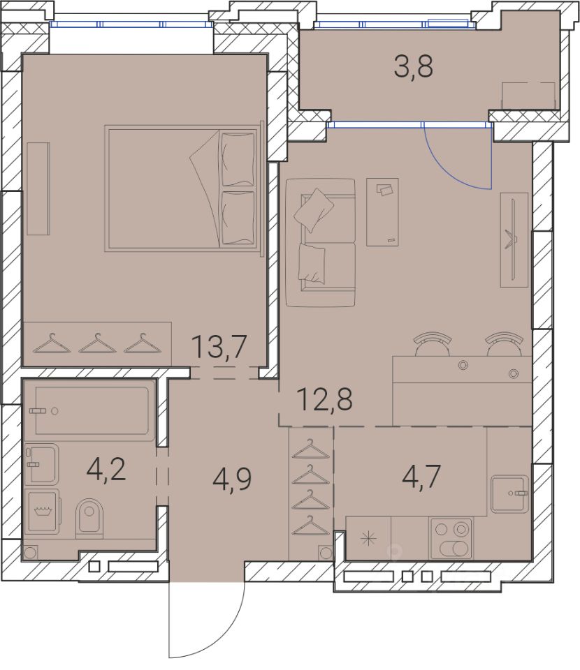 Жилая площадь13,7 м2