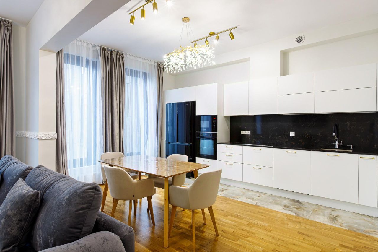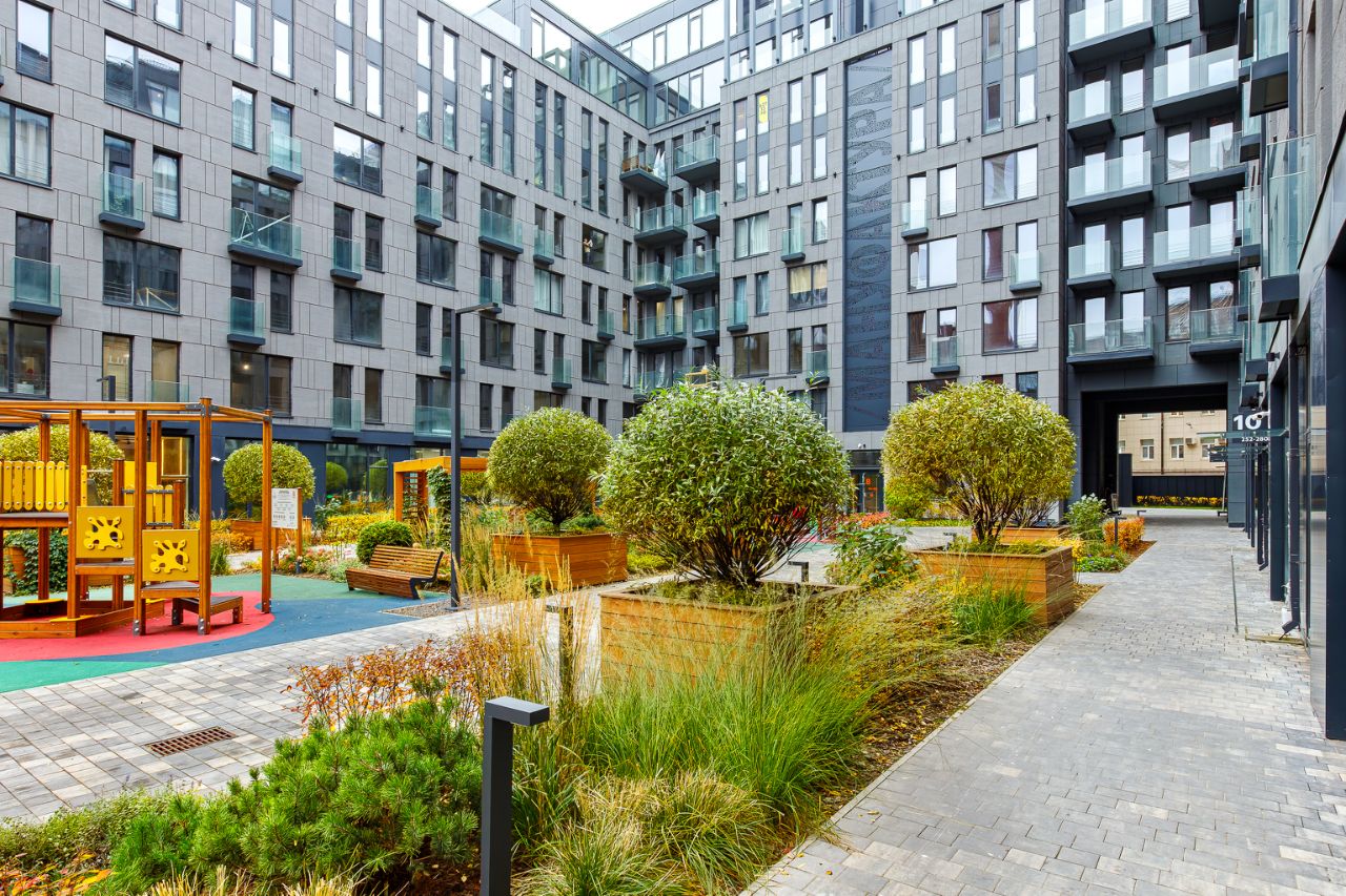 Планировка включает в себя кухню с гостиной, 2 спальни, 2 санузла и ТЕРРАСУ 30м2.