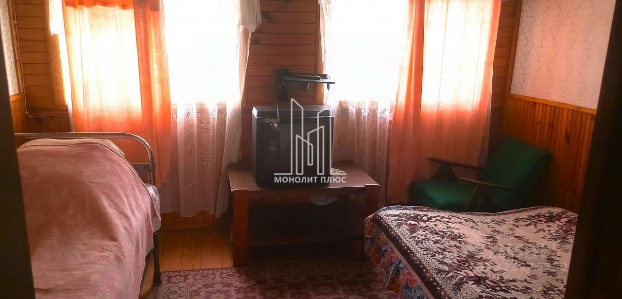 Арт. 114081604 На огороженном участке 636 кв.м. двухэтажный дом, баня, гараж и колодец. Участок огорожен, заезд для авто и калитка. Можно сразу заехать в гараж. Из посадок: яблони, сливы, смородина, крыжовник, малина, клубника, цветы. Газон. Дом. Фундамент ленточный, высокий. Стены - бревно. Наружная отделка - вагонка. На крыше - шифер. Дом крепкий, ровный, добротный. Пристроенное крыльцо выступает в роли прихожей. Там же раковина с подведённой водой, бойлером и сливом. Из прихожей попадаем в светлую тёплую веранду- столовую (16 кв.м.), из которой можно по лестнице подняться на второй этаж. Из столовой вход в кухню (8 кв.м.). Из кухни выходят две раздельные комнаты: маленькая спальня (5 кв.м) и комната (14 кв.м.). В доме эффективная добротная печь.